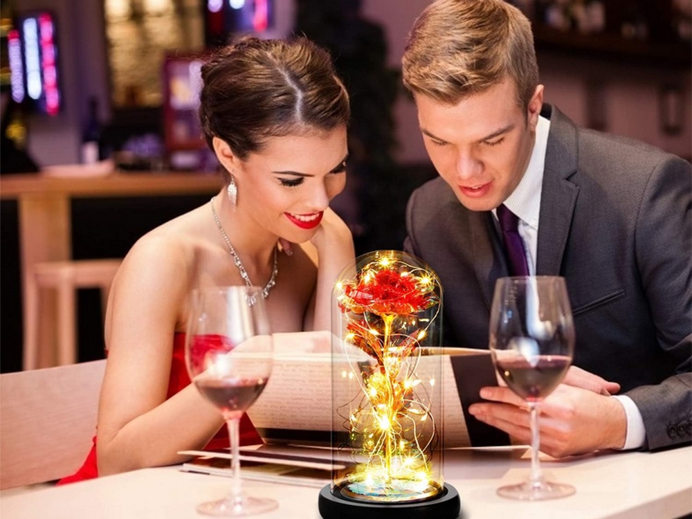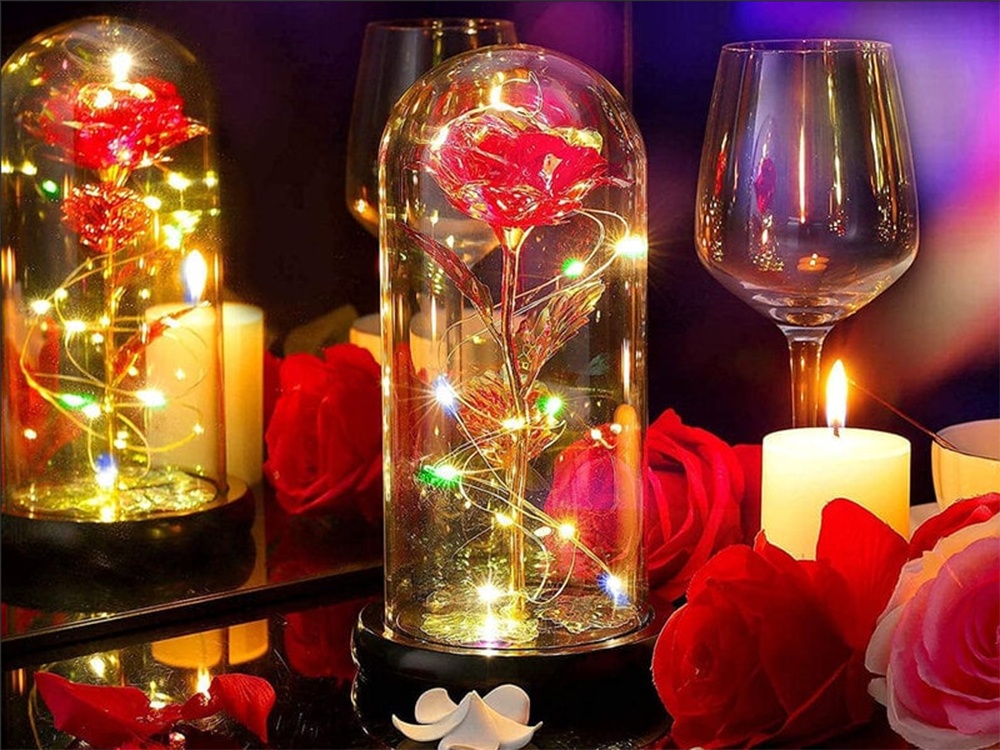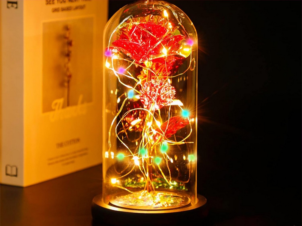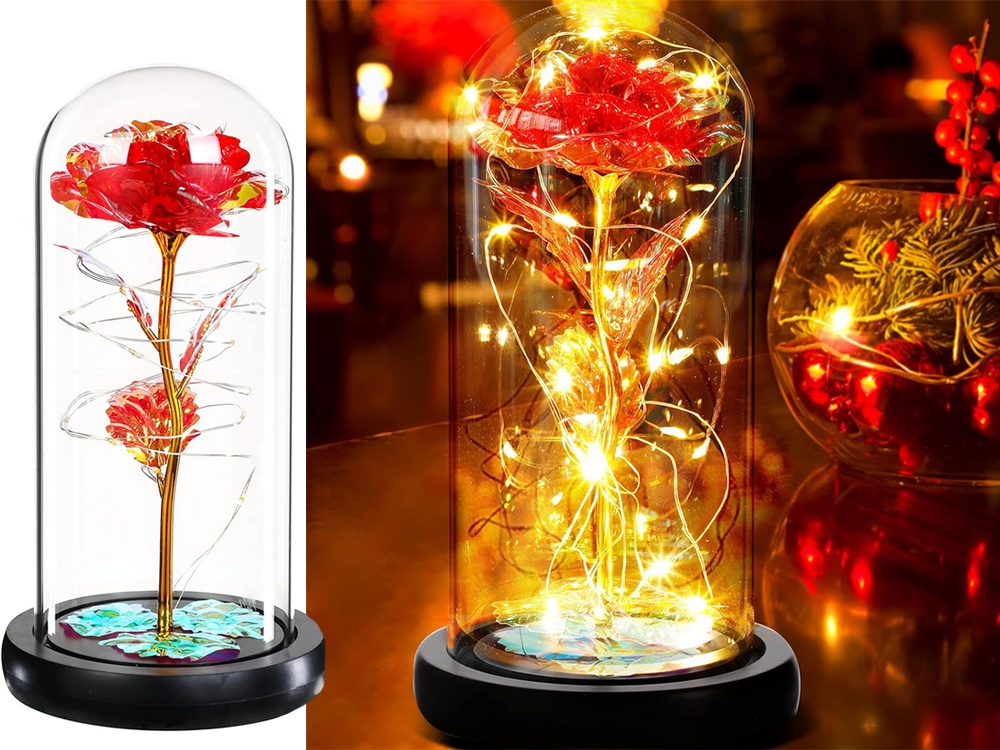 Evig ros i glas med LED-ljus – den perfekta presenten för kvinnor