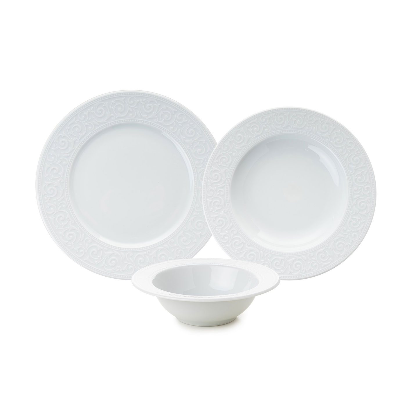 Tallriksset i 100% porslin med vackert dekorerade kanter, en stilren detalj som lyfter både vardag och fest. Setet är tåligt och praktiskt, då det tål både diskmaskin och mikrovågsugn.