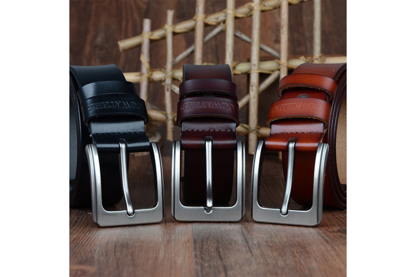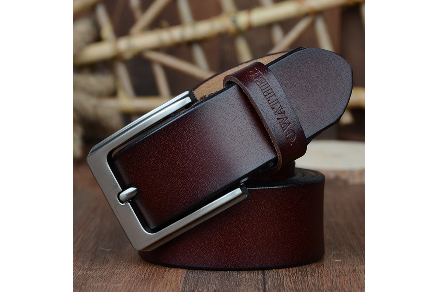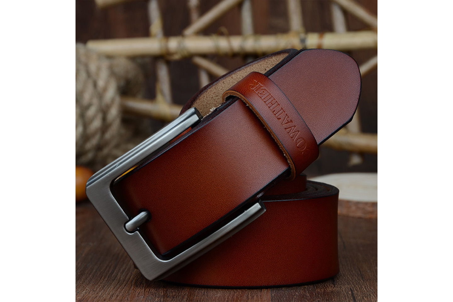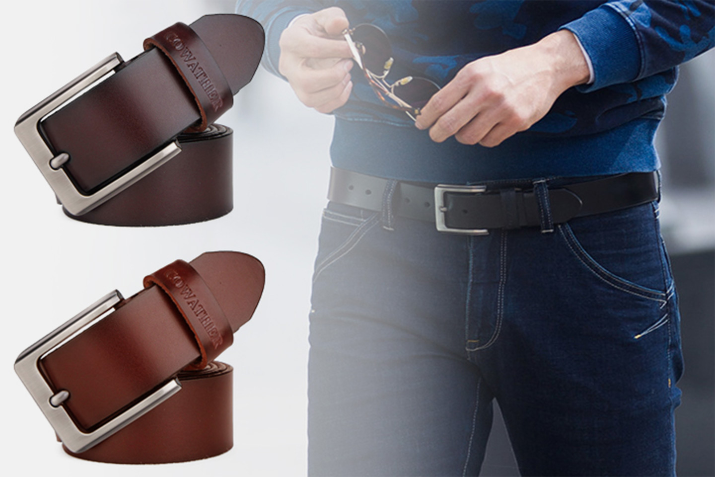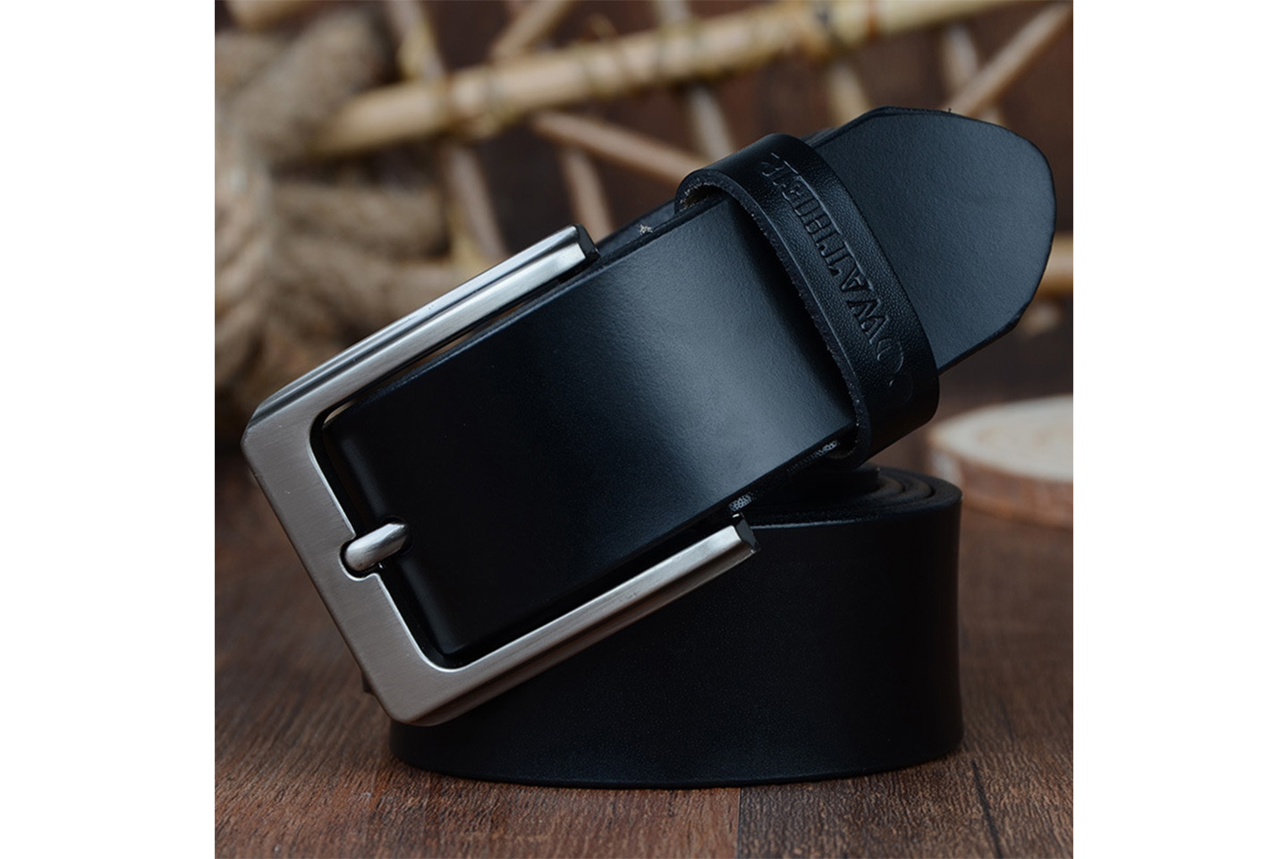 Elegant skärp i herrmodell tillverkat slittåligt material med lyxig känsla, enkel att matcha med de flesta kläder.