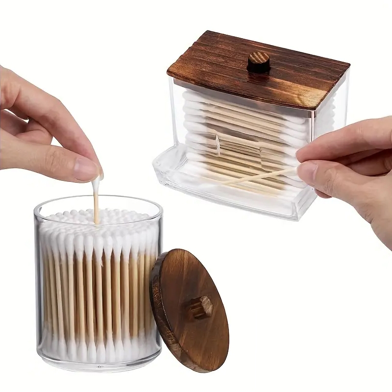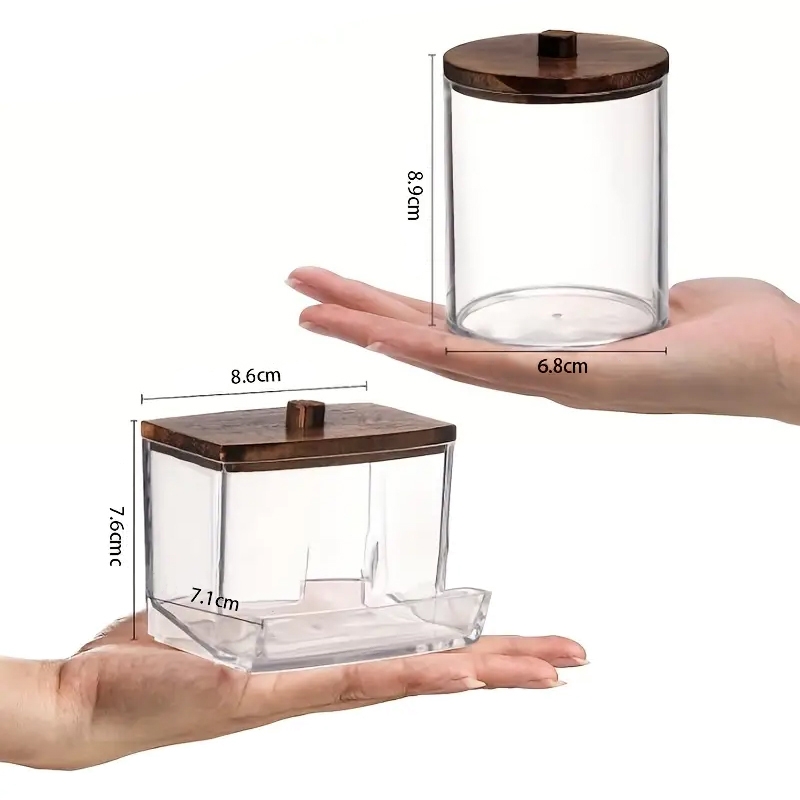 Ett set med tre transparenta behållare med lock. Det är en lika vacker som praktisk förvaring för kosmetika, hårband, ringar, gummiband, bomullspinnar, bomullstussar, badsalter, små tvålar och andra föremål.