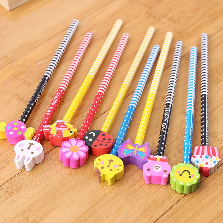 - Varje penna har ett avtagbart suddgummi med en slumpmässig, söt djurfigur ovanpå