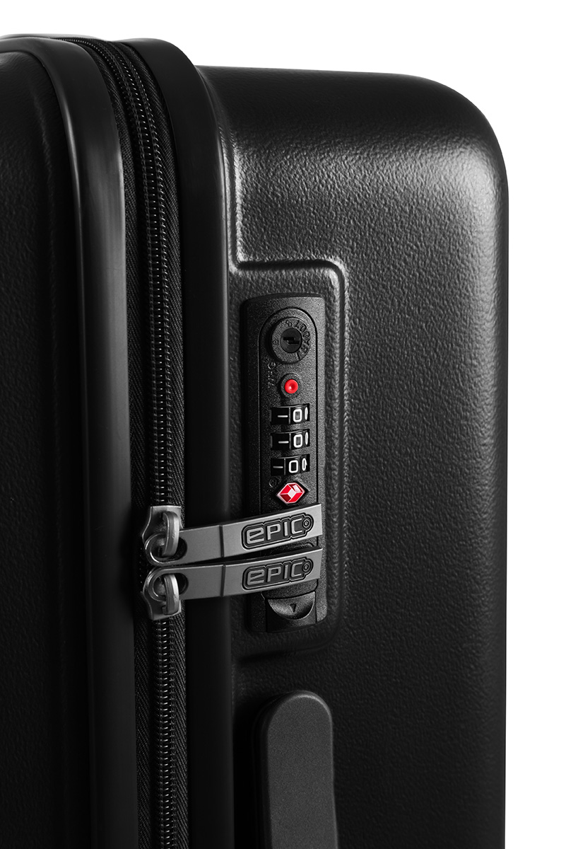 För extra säkerhet och sinnesro är den utrustad med ett fullt integrerat, högkvalitativt TSA-kombinationslås, vilket gör resor bekymmersfria – även till USA. Det slitstarka skalet med skandinavisk design är både slagtåligt och lätt, med en reptålig yta som bevarar dess stilrena utseende. Det robusta Airspeed DualTRAK-hjulsystemet säkerställer en jämn och smidig rullning på alla underlag.
