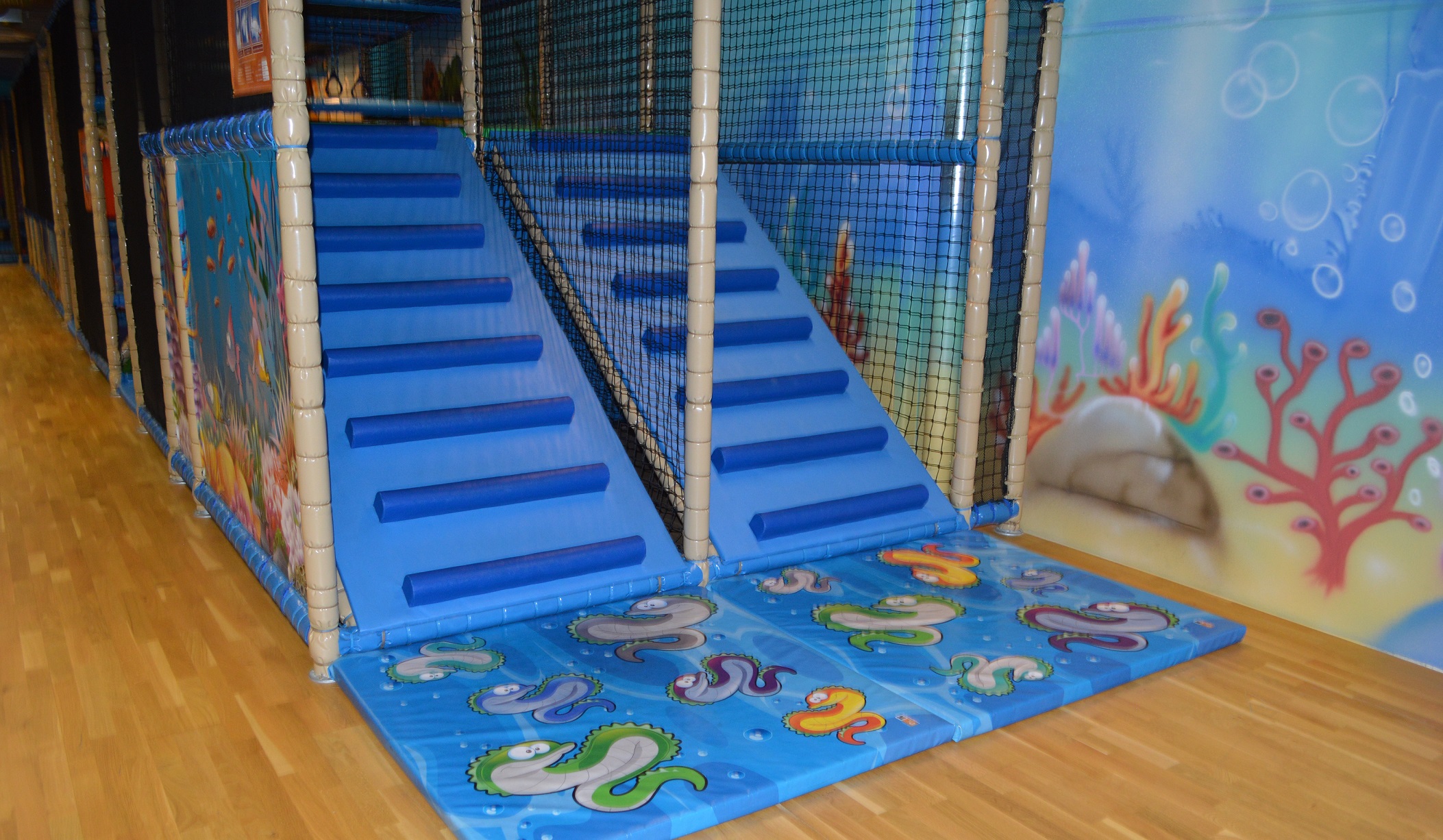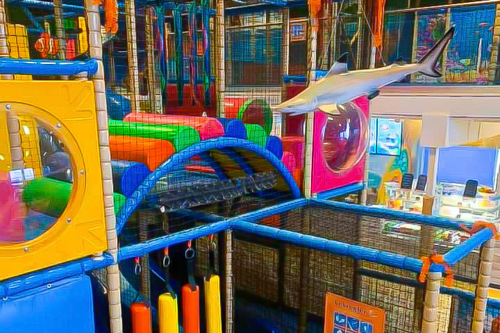 En stort lekland med havstema och en värld för lek, glädje, barnkalas och fika. Här kan barnen leka i hinderbanorna, fotbollsgården, klätterställningarna, cykelbanan, rutchkanorna, bollhaven, babyhörnan och hockeyborden är bara några av dom populära aktiviteterna. Eller varför inte ha barnkalaset i rymd- eller discorummet.