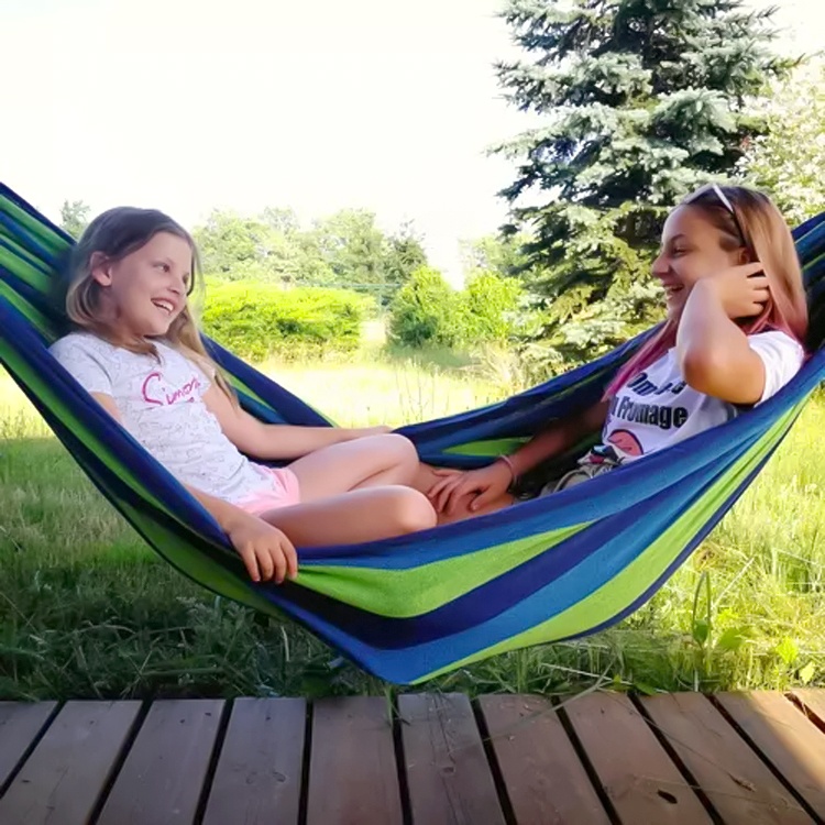 Bekväm hängmatta i bomull för två personer – perfekt för trädgården eller semestern.