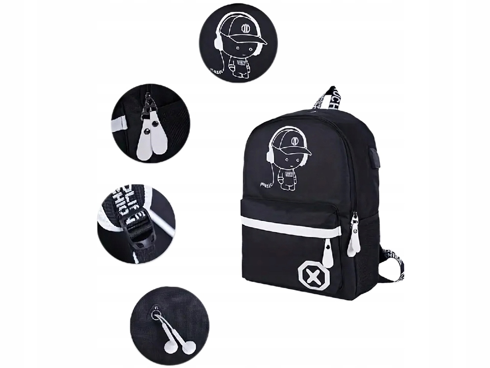 - Ryggsäcken är utrustad med en sidficka för en enkel laddning av din mobil samt en hörlursutgång, så att du smidigt kan lyssna på din favoritmusik när du är på språng.
