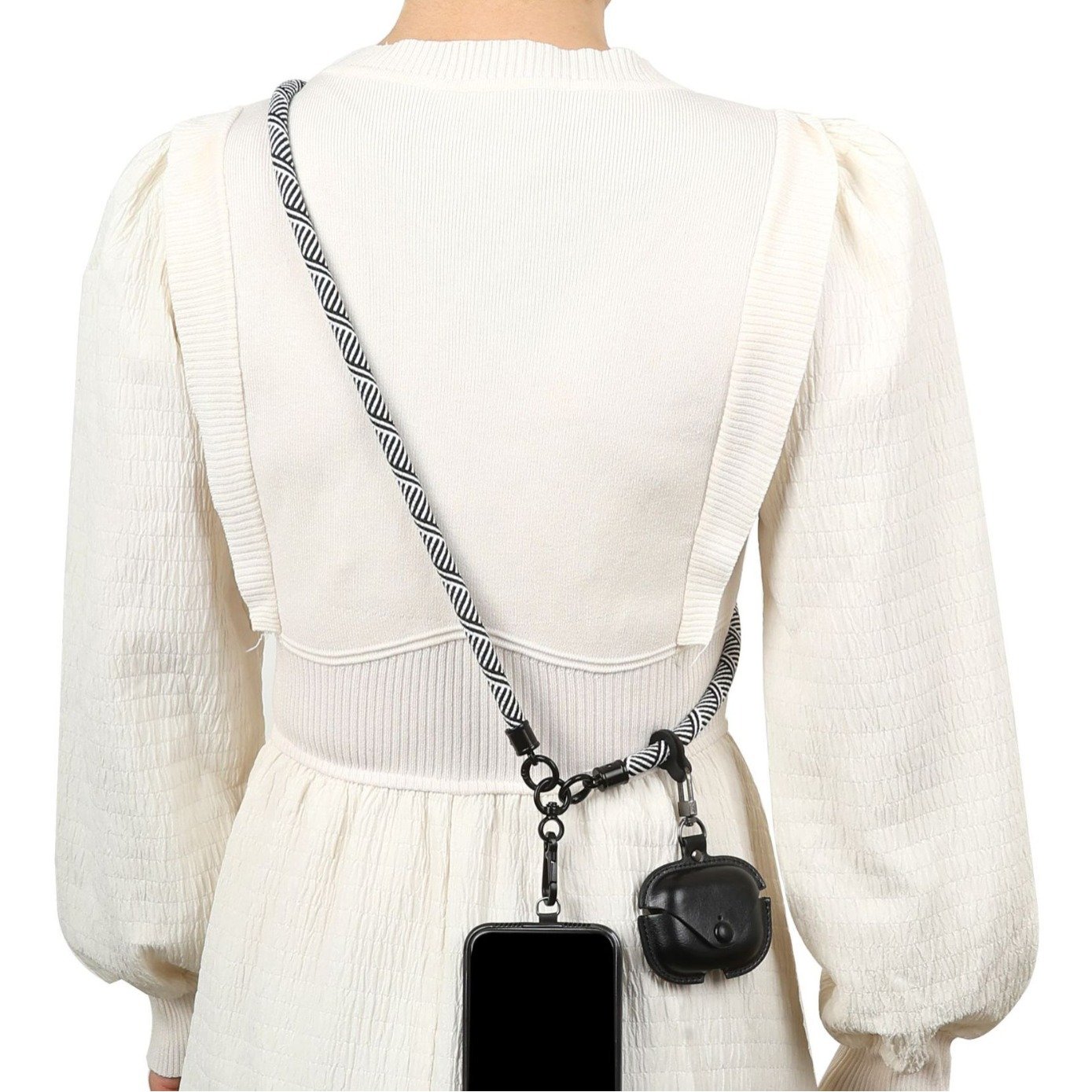 Remmen är tillverkad av hållbart och bekvämt nylonmaterial, och med en längd på 120 cm kan den enkelt justeras för att bäras runt nacken eller över kroppen. Den medföljande karbinhaken och det diskreta fästet som placeras under ditt befintliga mobilskal säkerställer en säker och stabil användning. Du kan också använda remmen för andra föremål som nycklar eller små accessoarer tack vare dess mångsidighet.