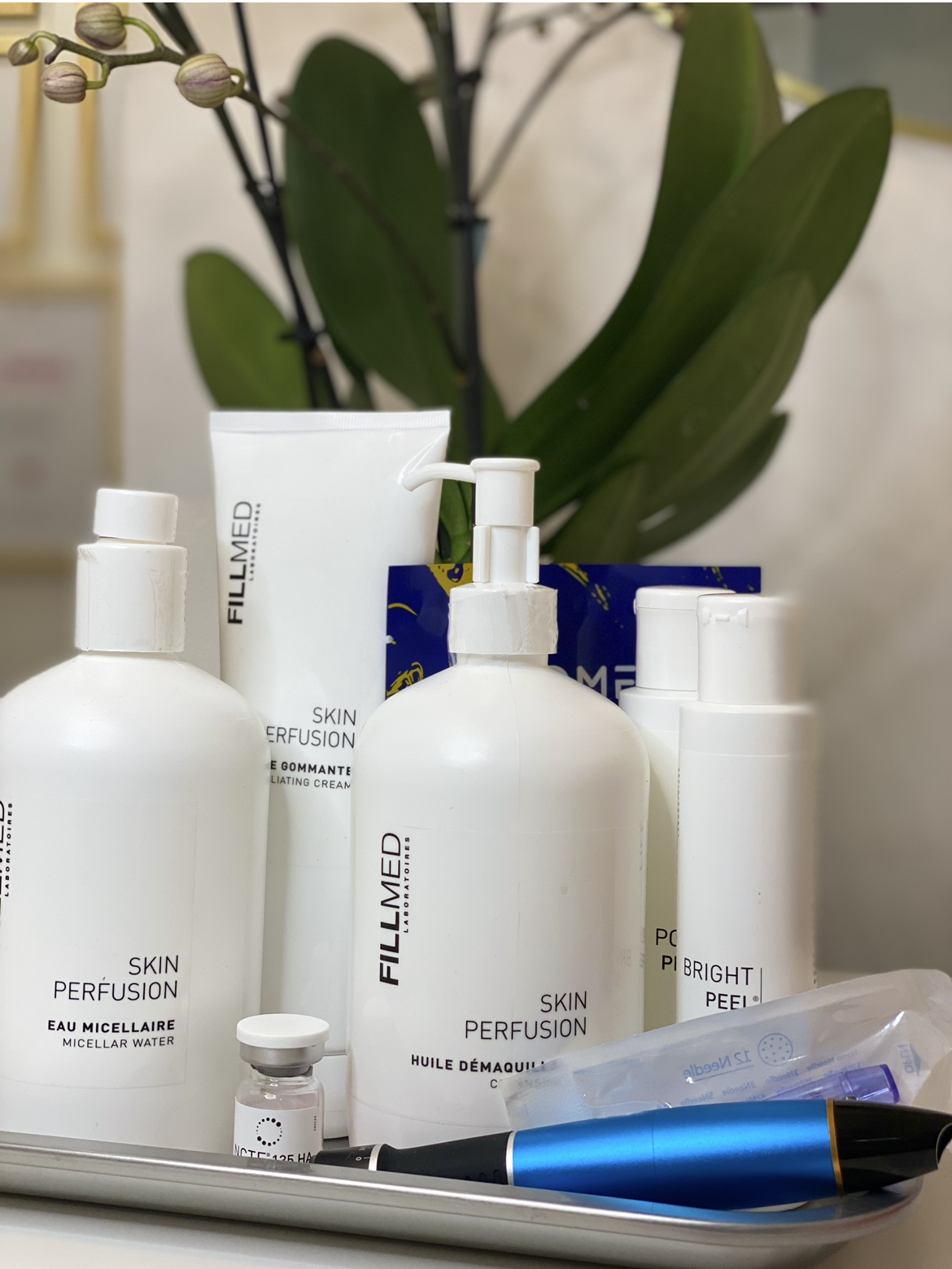 Unna dig själv en hudföryngrande behandling med microneedling som avslutas med kemisk peeling/skrubb och ansiktsmask.