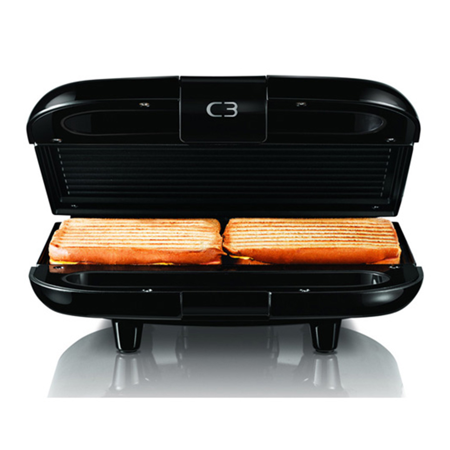 Smörgåsgrillen är det perfekta köksredskapet för att kunna göra en mängd med olika snacks och smörgåsar. Den högblanka svarta designen gör sig snyggt på köksbänken och de räfflade non-stick-plattorna ger ett jämnt grillresultat och är enkla att rengöra.