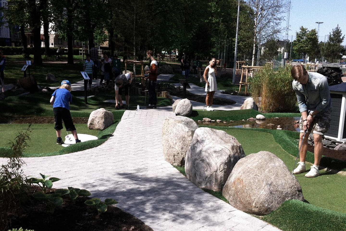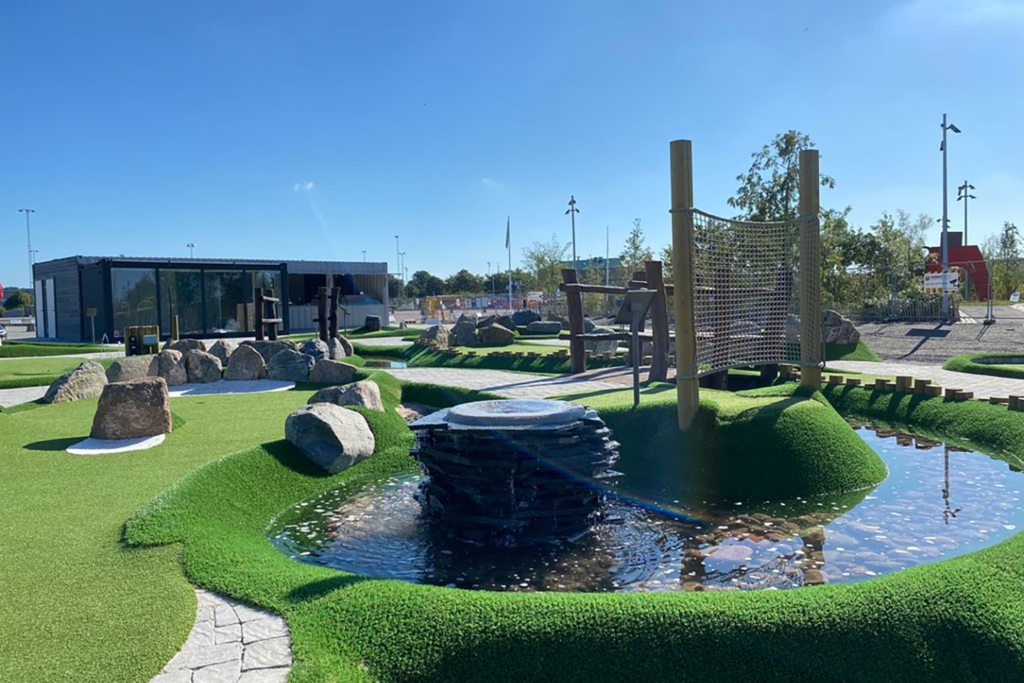 - Spela med hela familjen på fräscha banor med vackra vattenfall