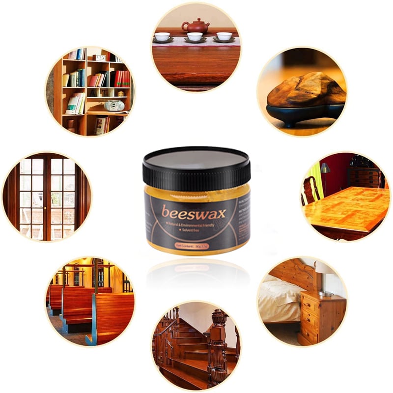 Ge dina möbler, golv och inredningsdetaljer i trä ett rejält lyft. Bivaxet rengör, polerar och ger trä en vacker lyster, vilket får det att nästan se nytt ut igen! Använd en trasa eller tvättsvamp för att behandla trä med bivaxet.