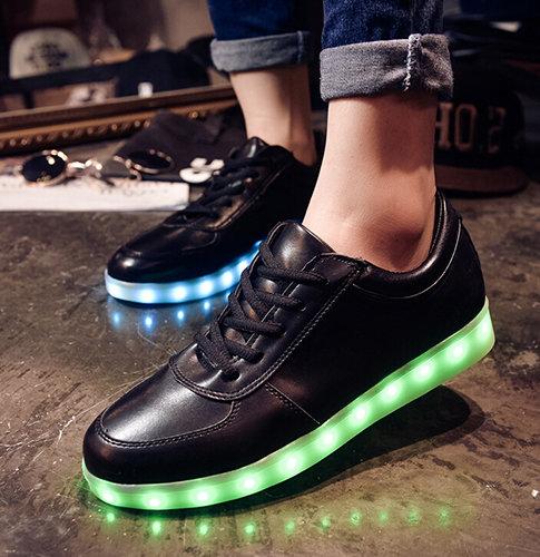 Skorna har en batteridriven LED-list/strip inuti skosulan som gör att skon lyser upp.