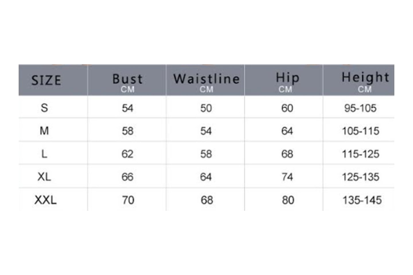 - S: 54, 50, 60, 95-105 cm