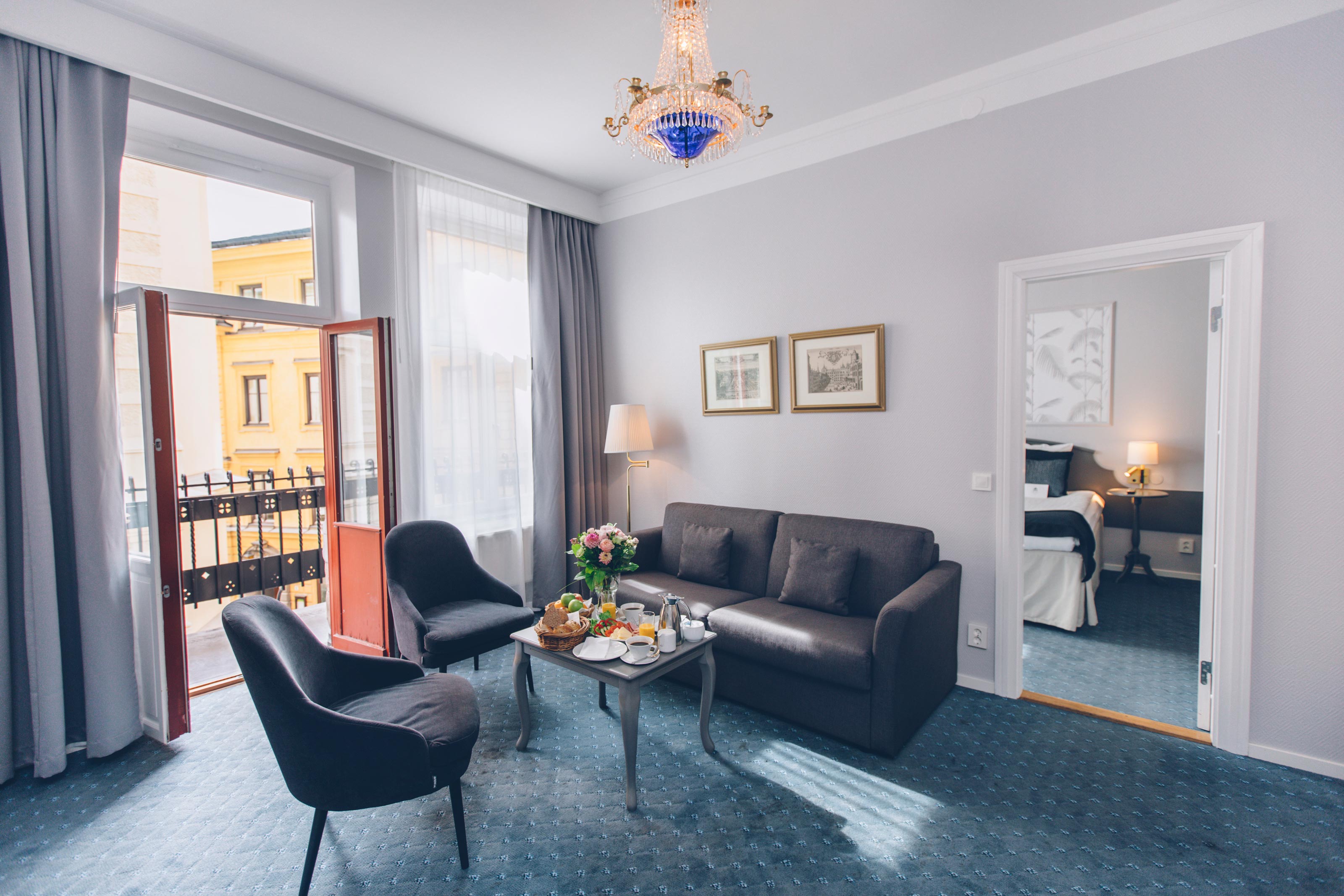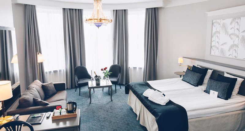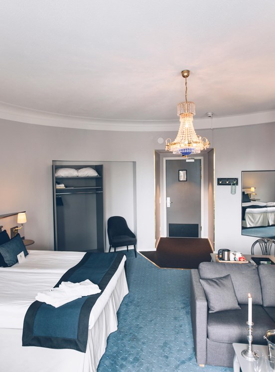 Dubbelrummen är på 15-20 kvm och utrustade med två bekväma sängar. Den charmiga och unikt runda juniorsviten ligger i hotellets torn med utsikt mot Birger Jarlsgatan. I sviten, som är på 34 kvm med plats för extrasäng, sover ni gott i de bekväma dubbelsängarna.