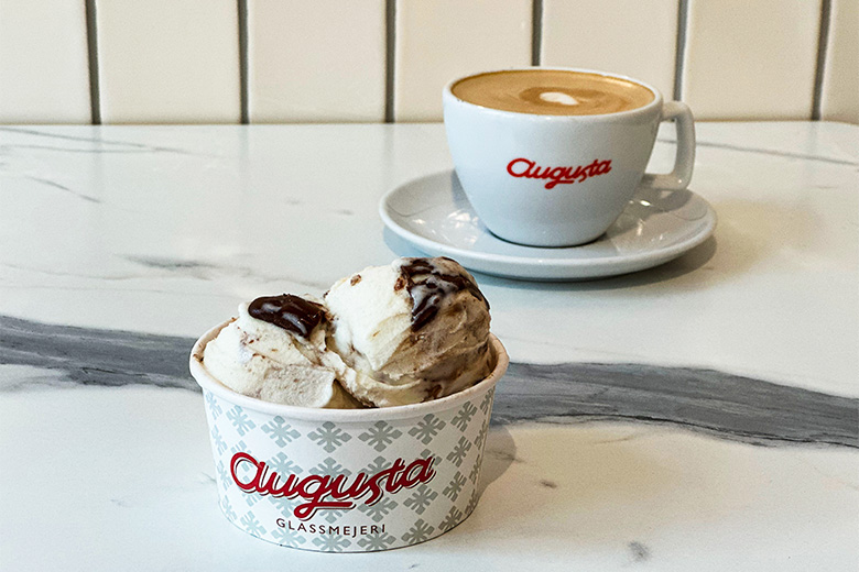 Unna dig något riktigt gott med en mellanglass (2 smaker i bägare) hos Augusta Glass. Här serveras dagsfärsk, hantverksgjord glass från det egna mejeriet i Limhamn, tillverkad med noga utvalda ingredienser och en stor dos kärlek.