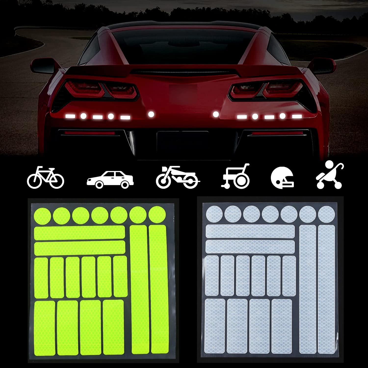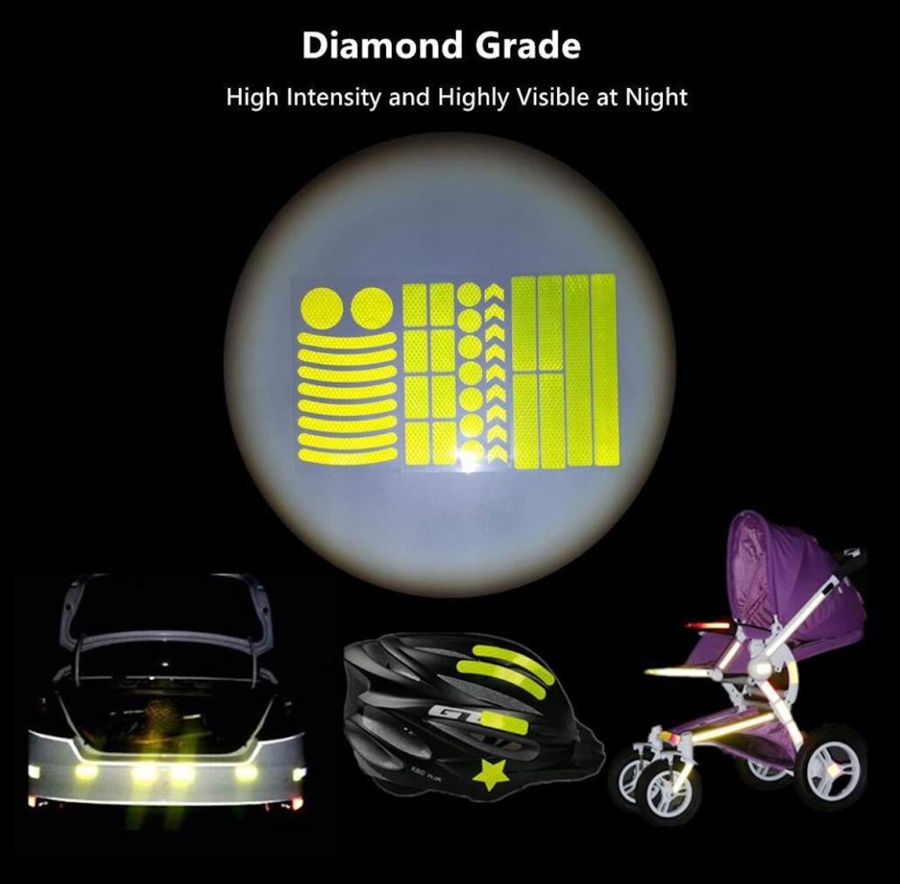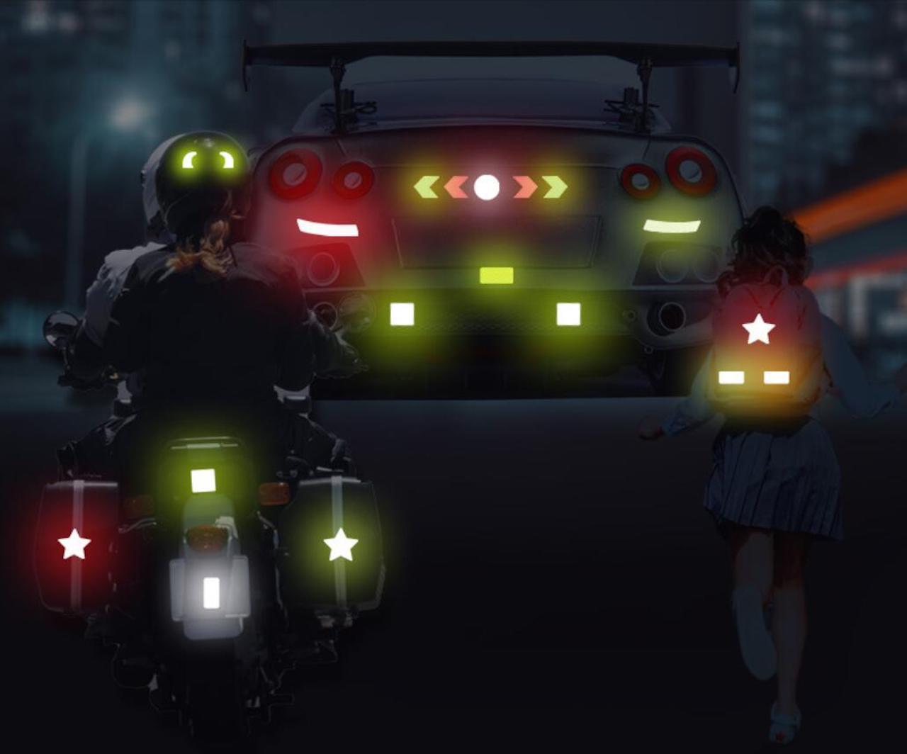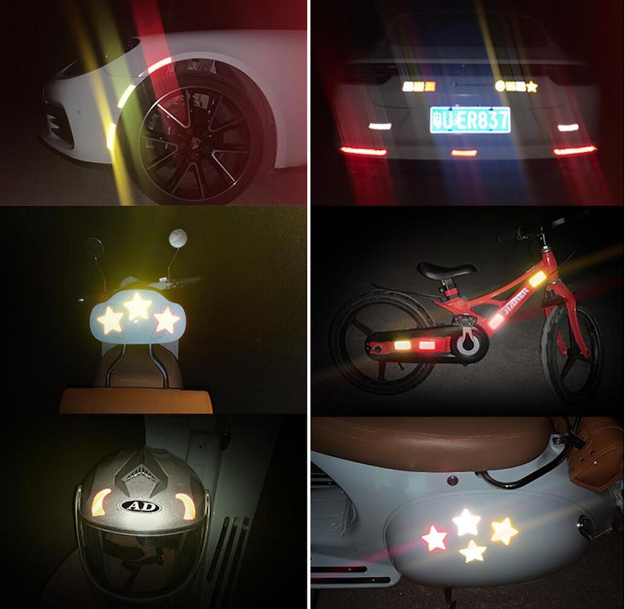 Klistermärkenas starkt reflekterande yta får dig att synas bättre på upp till över 100 meters avstånd och är lämpliga att sätta på cykeln, cykelhjälmen, resväskan, väskan, rullstolen, rollatorn, barnvagnen eller på andra fasta objekt som till exempel din brevlåda.