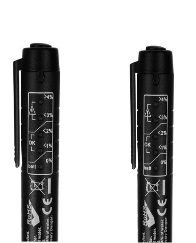 Röd diod - vattenhalt ca. 3%, två röda dioder - vattenhalt över 3%.