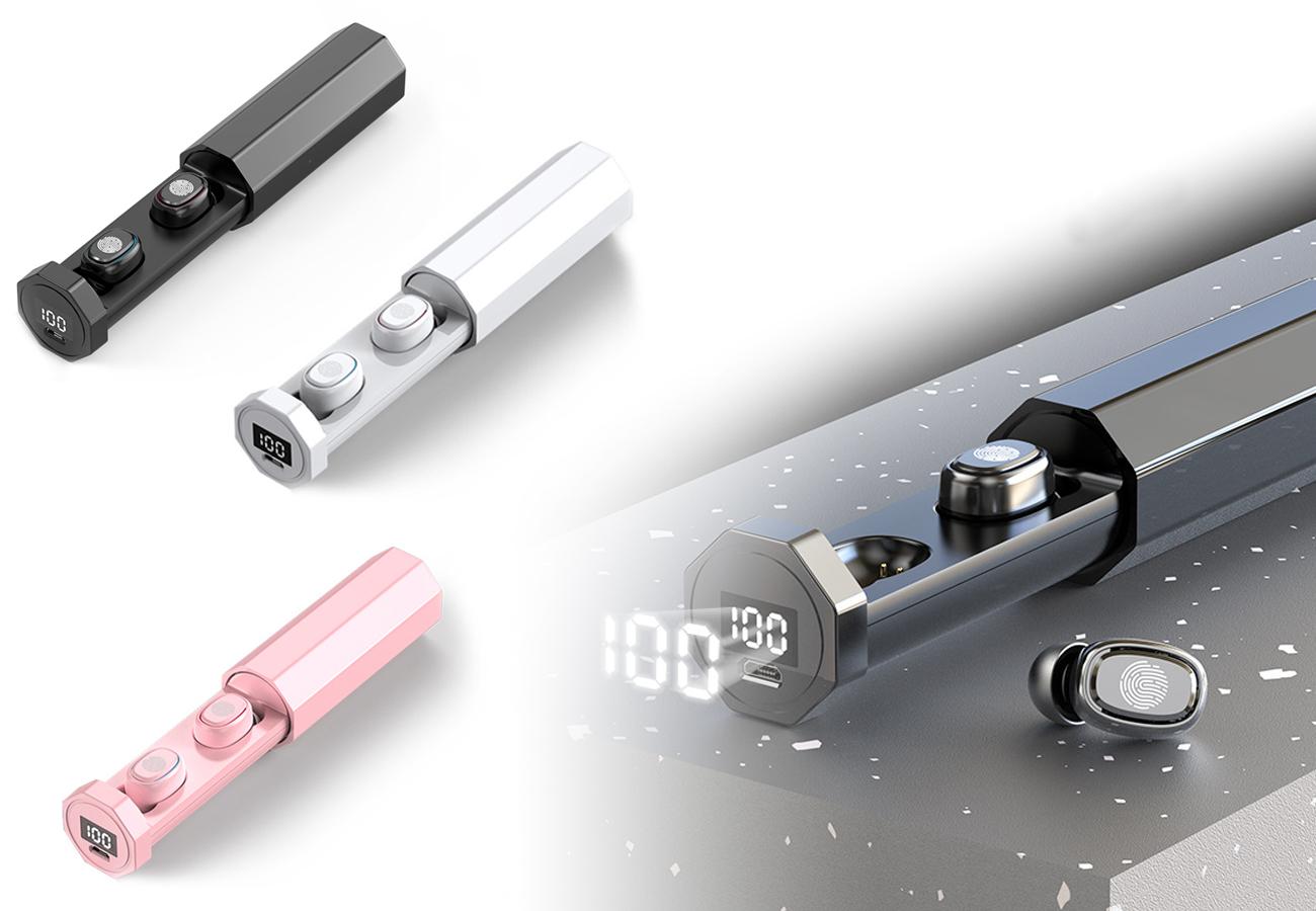 Trådlösa TWS Hörlurar i en mycket snygg design och prisvärt med inbyggd powerbank!