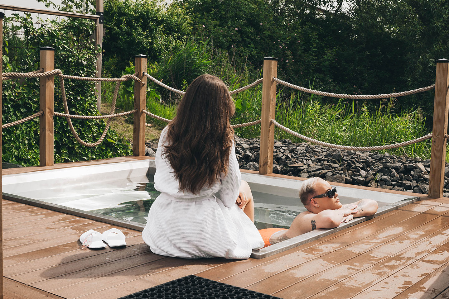 - Entré till relaxavdelning med bastu, IR-bastu, varma källor utomhus, inomhusjacuzzi, kalldusch
