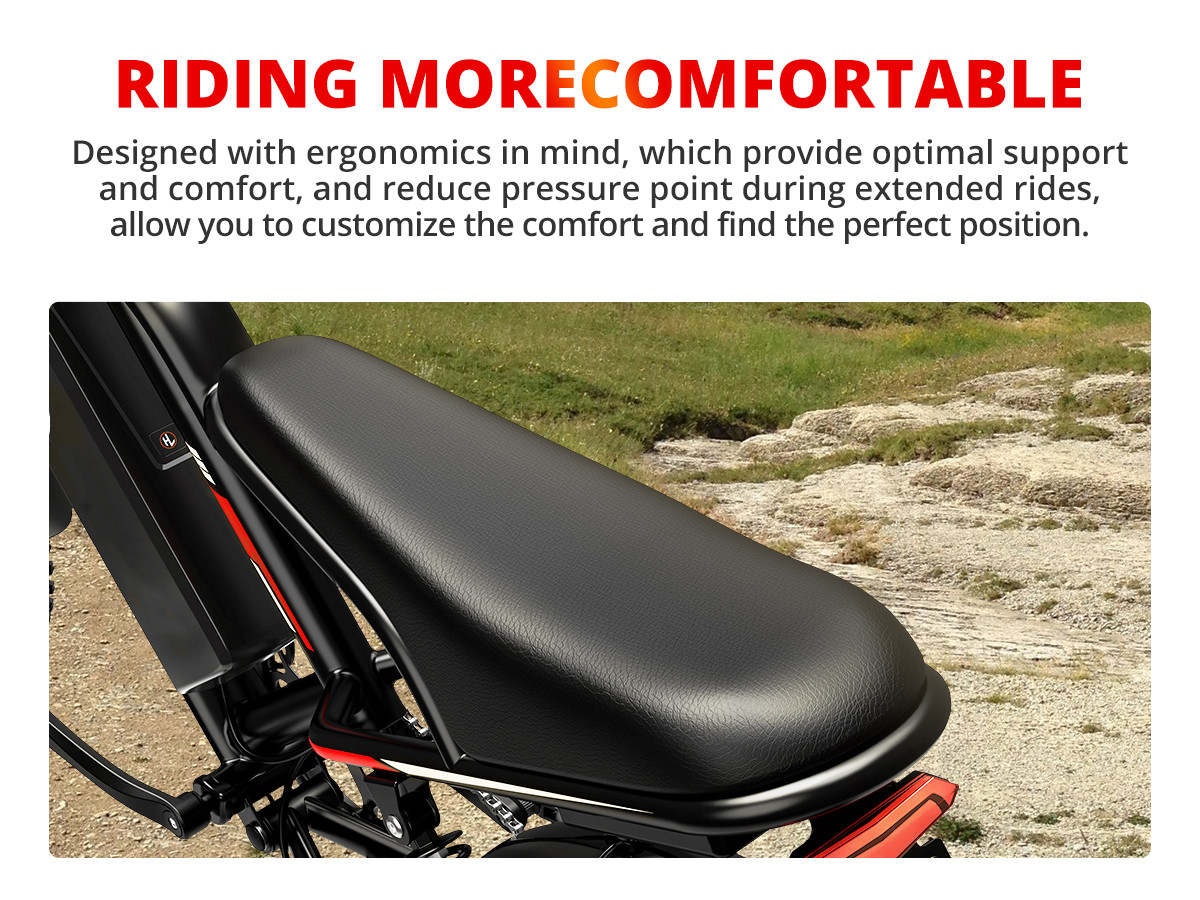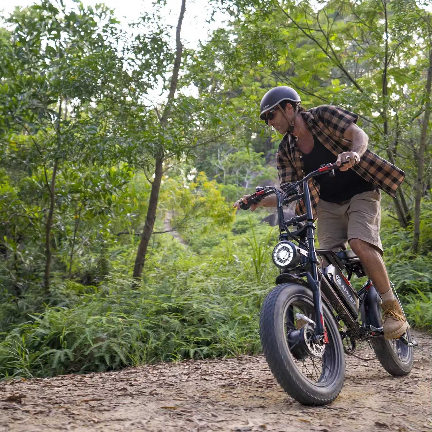 - Mästra Alla Terränger: Förbered dig för att ta dig an alla utmaningar med självförtroende. Vår elcykel är utrustad med 4-tums tjocka däck som erbjuder enastående stabilitet och grepp på alla underlag. Från sandiga stränder till klippiga stigar och stadens gator (i det land där produkten godkänns), inget kan hindra din utforskningslusta.