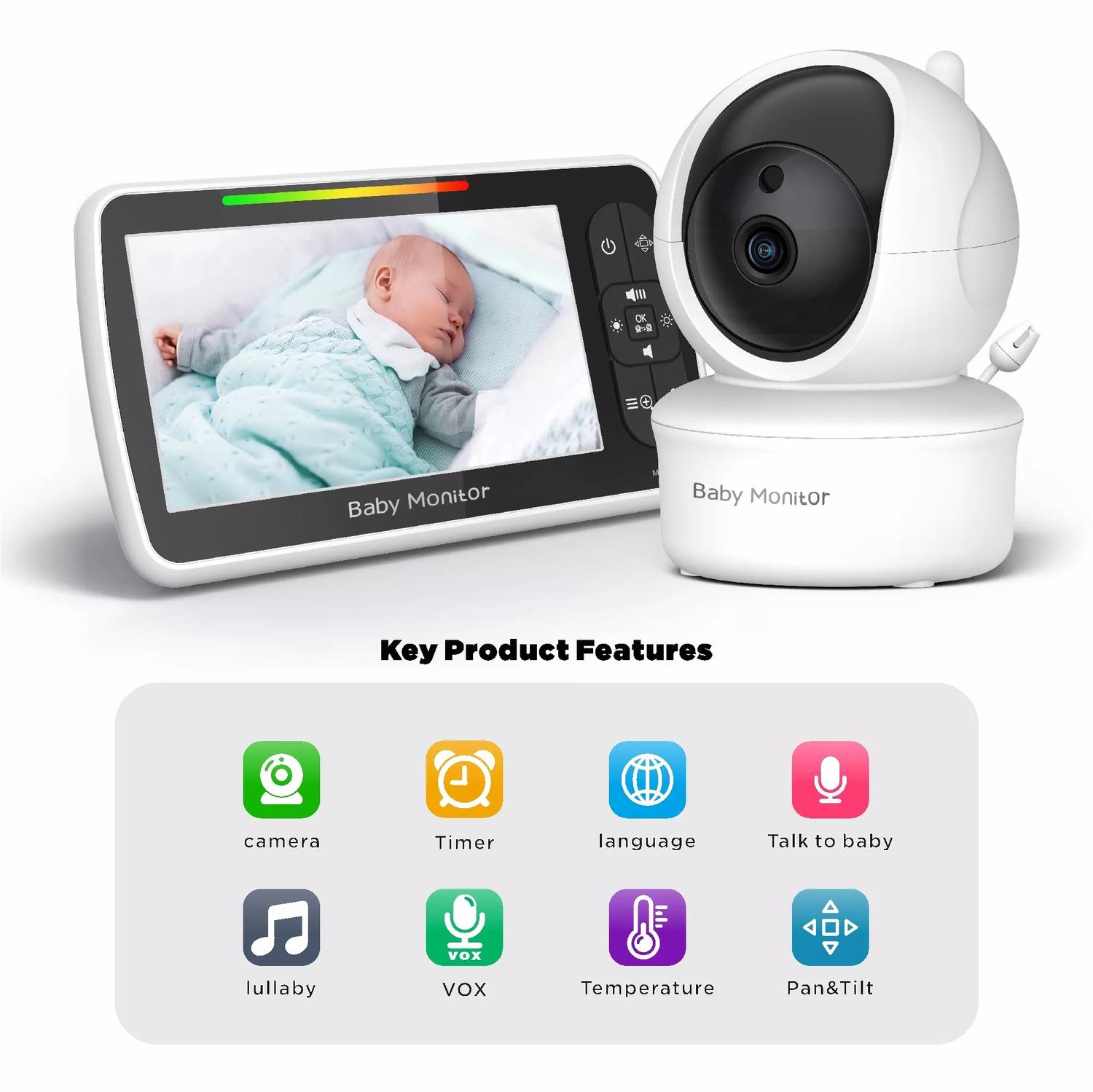 Letar du efter den perfekta babyvakten / baby monitorn för att hålla ett öga på din lilla? Sök inte mer! Vår bärbara, högupplösta babymonitor har en 5-tumsskärm och en rörlig kamera med tiltfunktion,