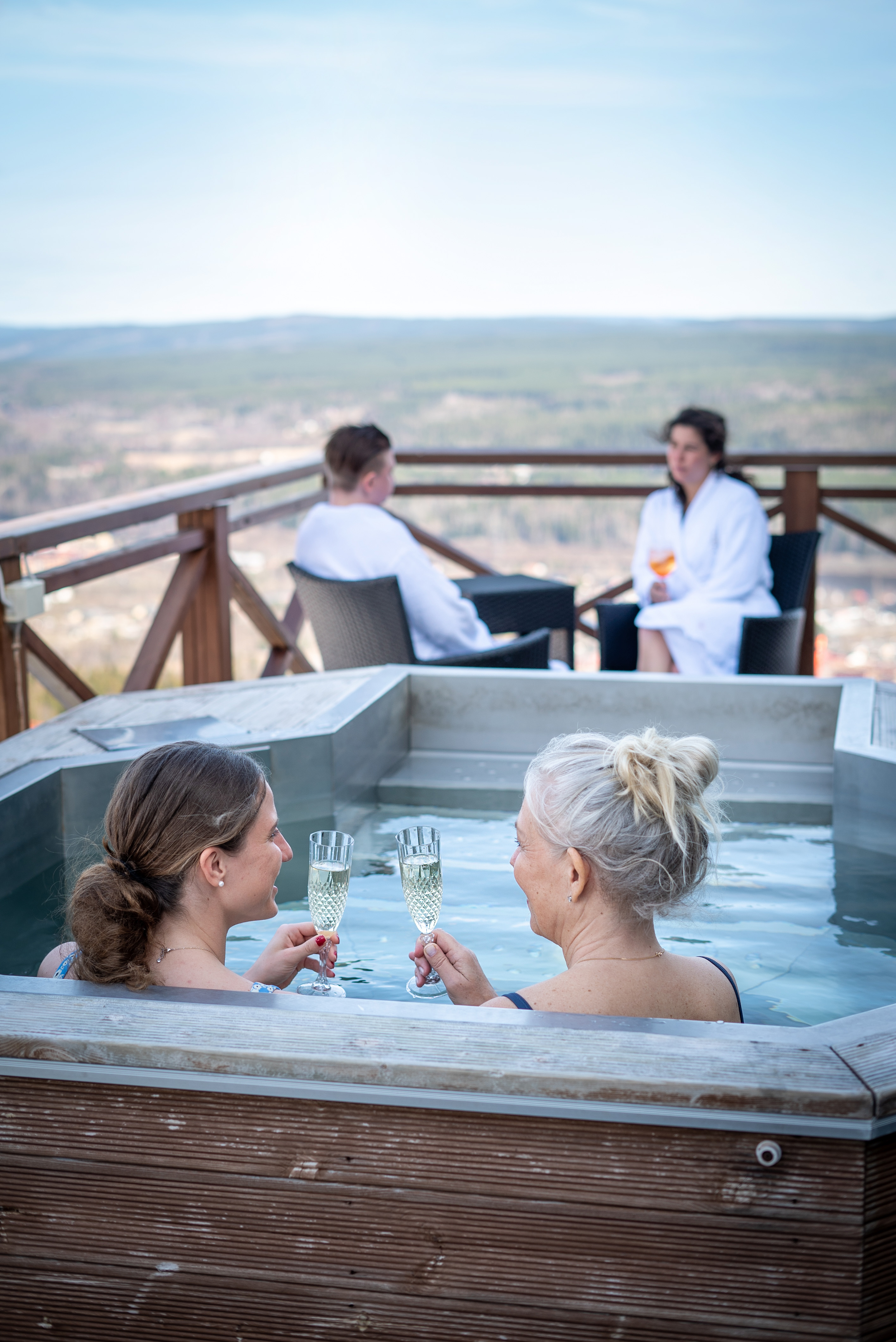 "Jättefint hotell men härligt spa. Fin utsikt och mysigt rum med en stor flaska bubbel och två chokladkakor. Vi var väldigt nöjda, Bastun var i lagom storlek. Dock var maten på hotellet en besvikelse, mycket pengar för inprincip skolmat"