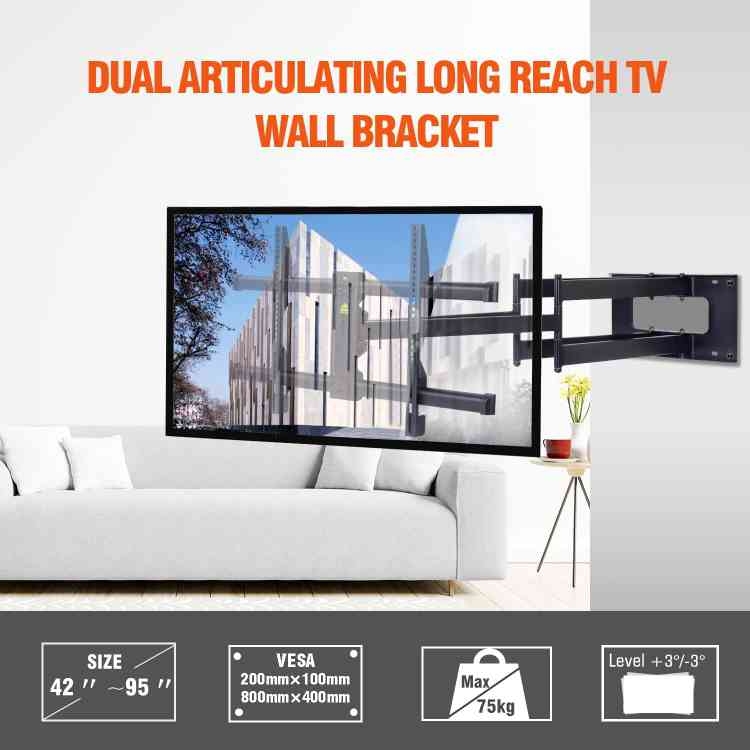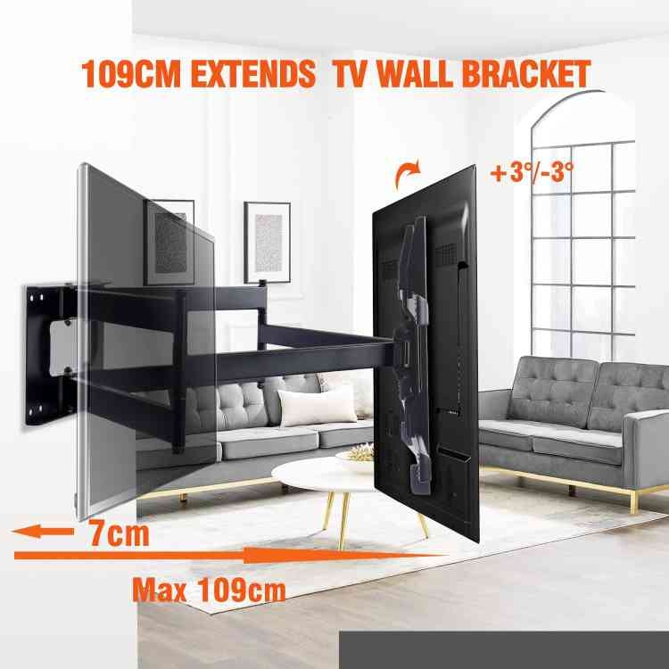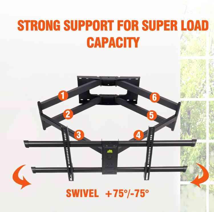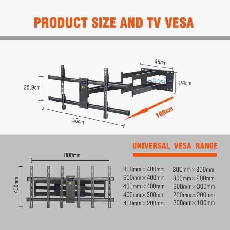 När du väljer att montera din TV på väggen, är säkerhet och stabilitet avgörande faktorer för att skapa den perfekta hemmabio-upplevelsen. Med vårt TV-väggfäste för 42-95 tums platta eller böjda skärmar kan du vara säker på att din TV kommer att sitta stadigt och säkert på plats. Vår produkt är utformad för att vara fullt rörlig, vilket ger dig flexibilitet att justera vinkeln och positionen för att uppnå den bästa tittarupplevelsen oavsett var du befinner dig i rummet. Dessutom är det kompatibelt med både platta och böjda skärmar, vilket gör det till en mångsidig och praktisk lösning för alla typer av TV-apparater. Med ett VESA-mönster är det enkelt att installera och passar perfekt med de flesta TV-apparater på marknaden. Så oavsett om du vill njuta av dina favoritprogram eller spännande filmer, kan du luta dig tillbaka och slappna av med förtroendet att din TV är säkert monterad med vårt pålitliga och mångsidiga TV-väggfäste.