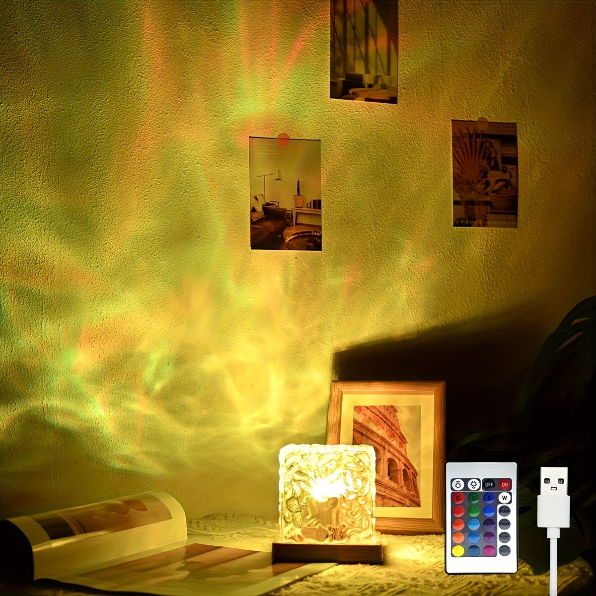 RGB kristallampa med USB-fjärr – dekorativ stämningslampa i glas-kub