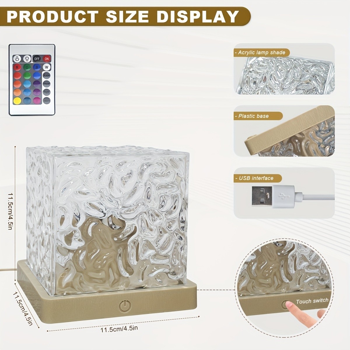 - Typ: RGB kristallampa/dekorativ bordslampa i kubform