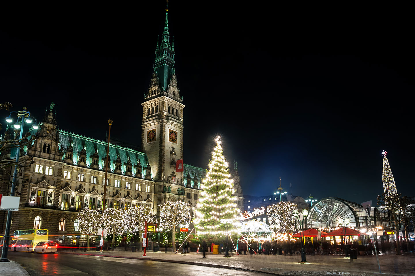 Upplev Hamburg när staden glittrar som mest! Under november och december fylls stadens torg med klassiska julmarknader där tradition möter atmosfär - från den pampiga marknaden vid Rådhustorget till små, mysiga kvarter fulla av hantverk, mat och värmande drycker. Missa inte den flygande jultomten som svävar över besökarna tre gånger om dagen. Välkommen till Hamburg i adventstid - där julen doftar glühwein, brända mandlar och granris!