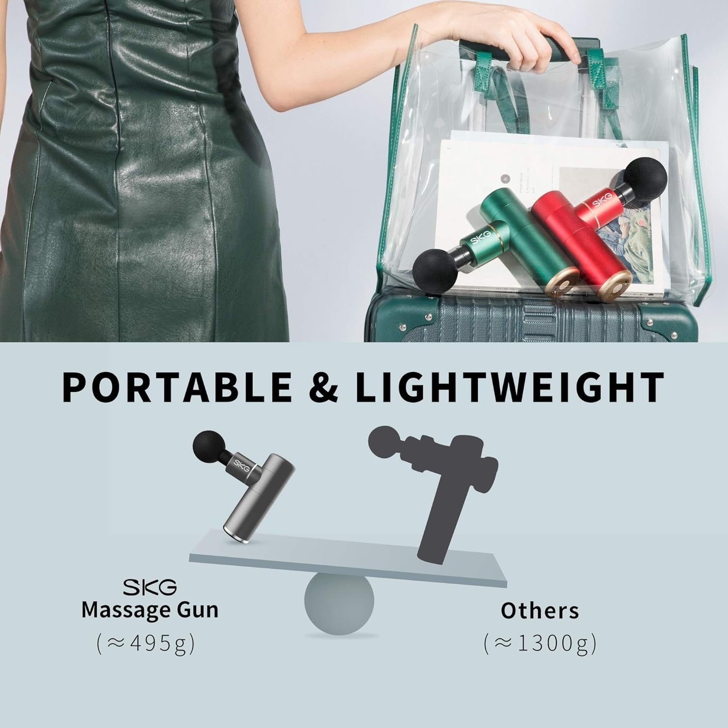 SKG F3 Massagepistol är designad för ultimat bekvämlighet och väger endast 495 gram.
