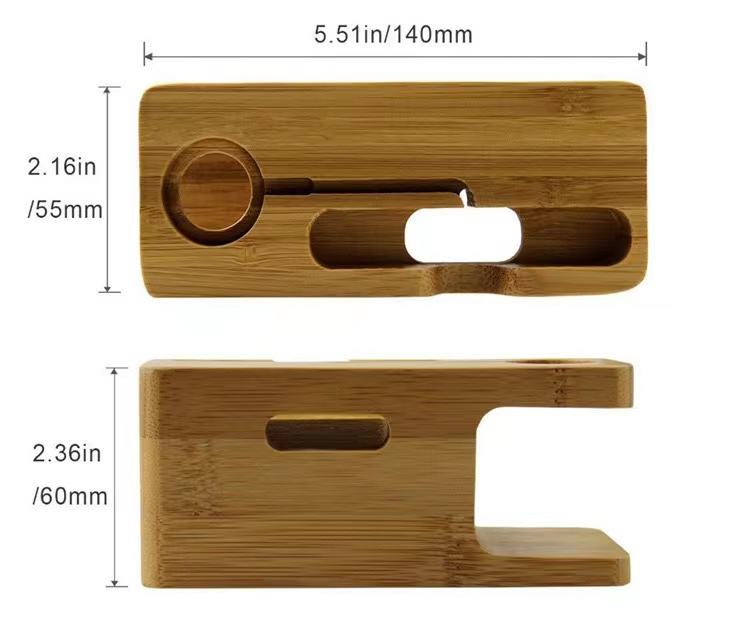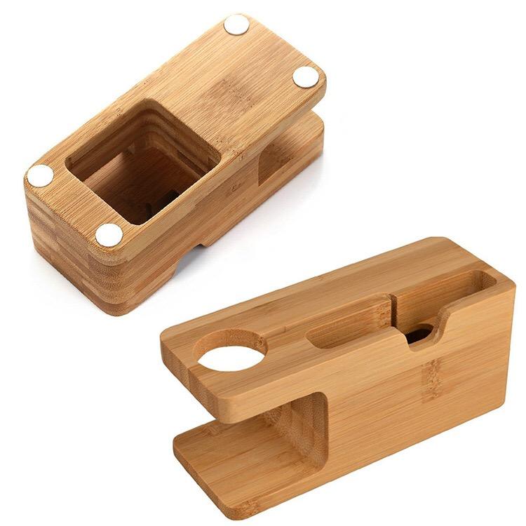 Håll ordning på dina enheter med en praktisk laddningsstation i bambu. Den fungerar som ett ställ för både mobil och smartwatch och låter dig ladda båda samtidigt på ett snyggt och organiserat sätt. Den är tillverkad i hållbar bambu. Perfekt för skrivbordet, nattduksbordet eller kontoret.