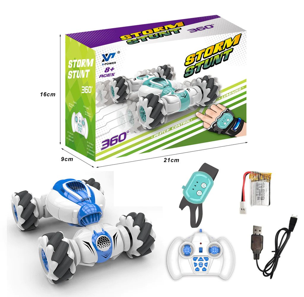 Ta dig ut på vägarna med denna radiostyrda bil med sin stötsäkra och fallskyddande konstruktion, anpassningsförmåga till olika terränger och en höjbar kropp på 7 cm, är denna fjärrstyrda bil redo för alla utmaningar. Styr bilen med fjärrkontrollen eller revolutionerande handrörelsestyrning.