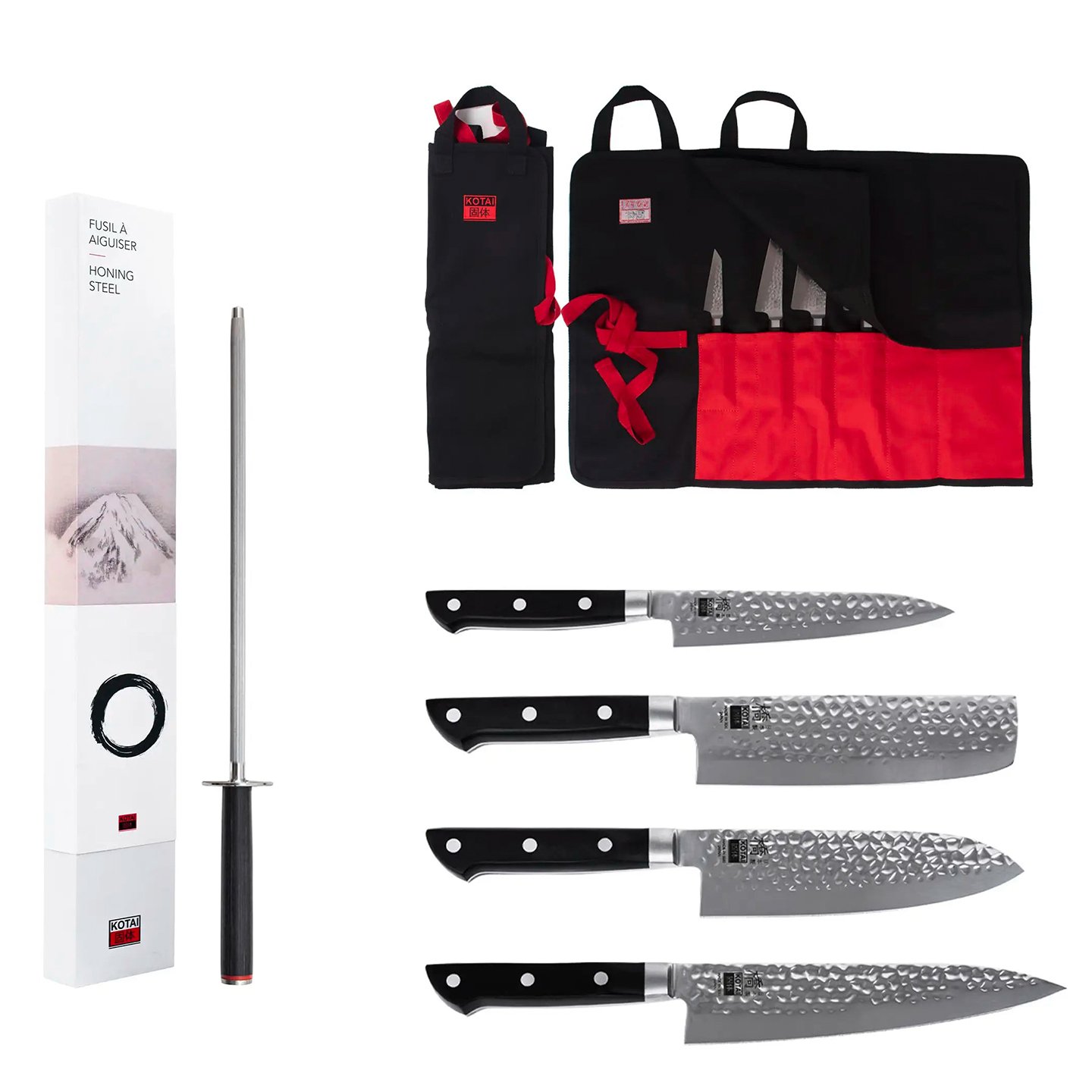Utforska precision och elegans med Nomad Complete 6-delade Hashi Tsuchime-setet. Setet innehåller 4 exklusiva knivar (Petty, Nakiri, Santoku och Gyuto) med en vacker hamrad finish, ett slitstarkt knivfodral i 100 % bomull och ett solitt slipstål. Perfekt för kockar som vill ha kvalitet, stil och mobilitet i ett!
