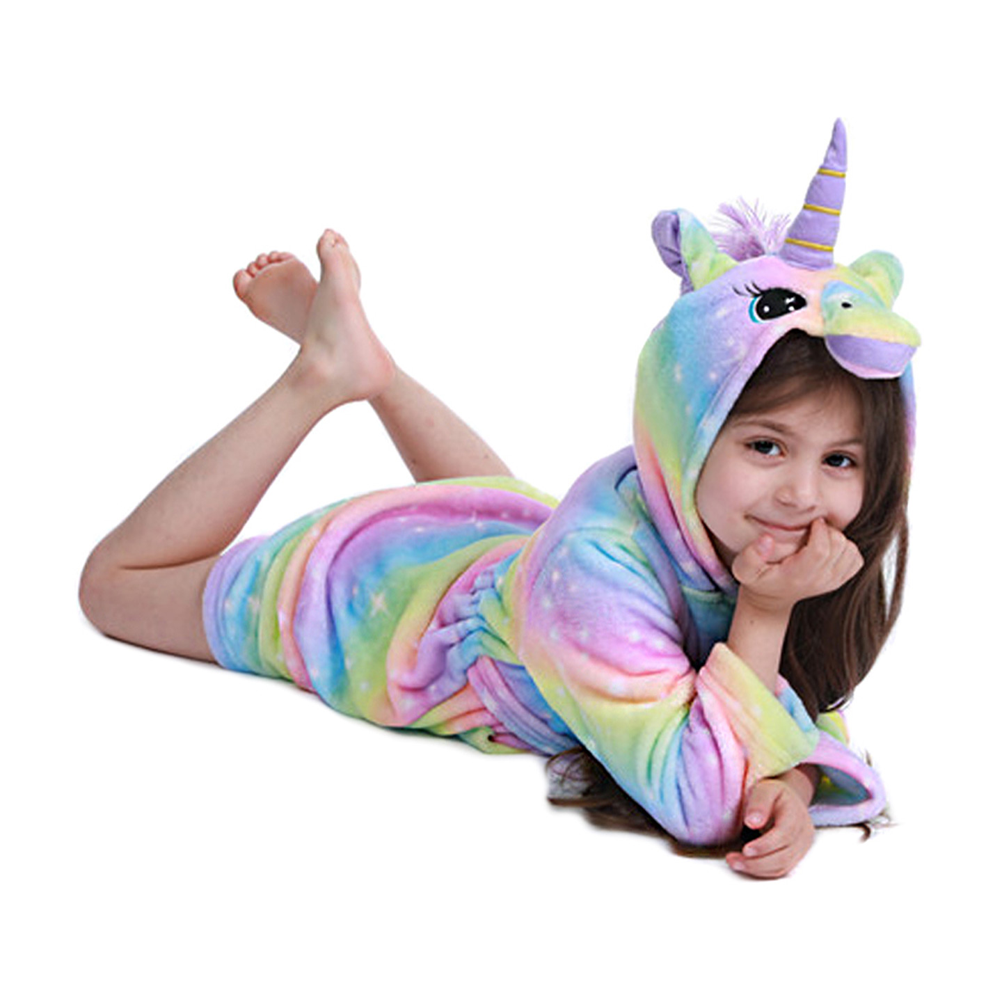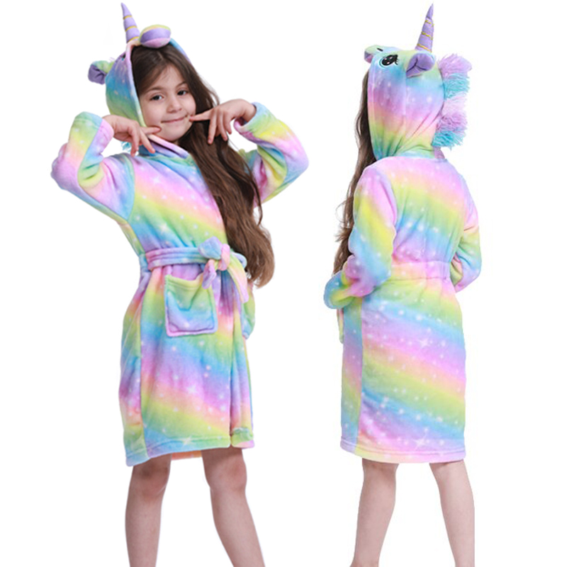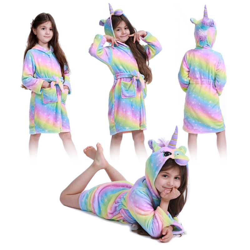 Badrock för barn med enhörning på huvan. Söt, mjuk och mysig morgonrock, perfekt att mysa i efter badet och i soffan.