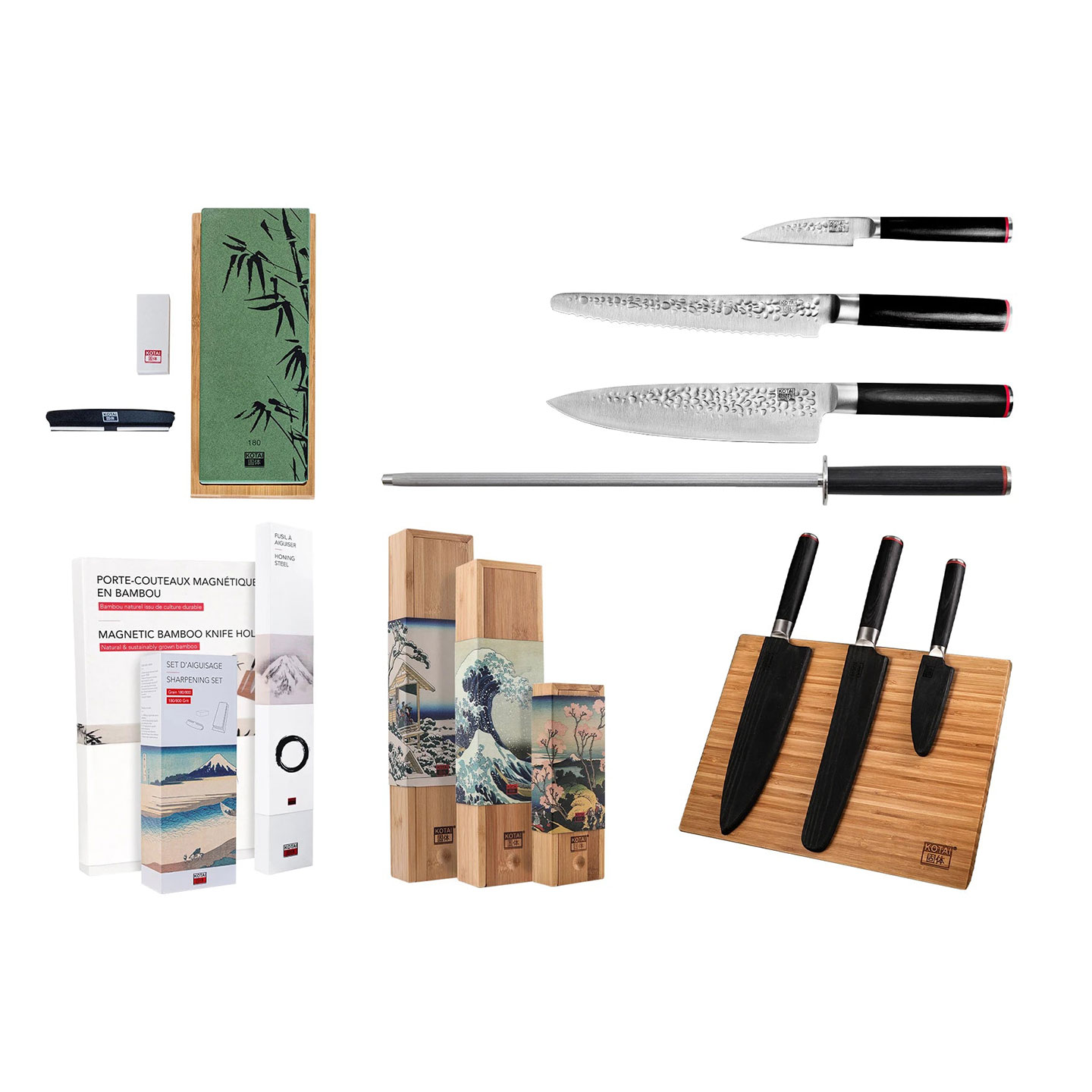 Ett komplett knivset med tre vassa favoriter (skalkniv, gyuto och brödkniv) samt smarta tillbehör: magnetisk knivhållare i bambu, brynstål och slipstensset. Perfekt för dig som vill ha kvalitet och stil i köket.