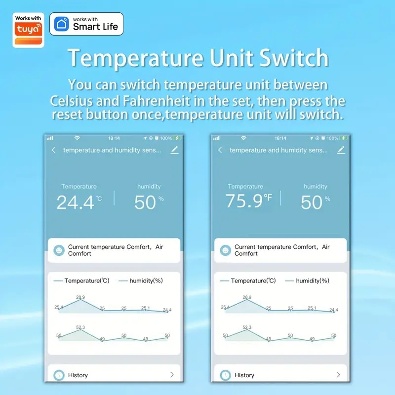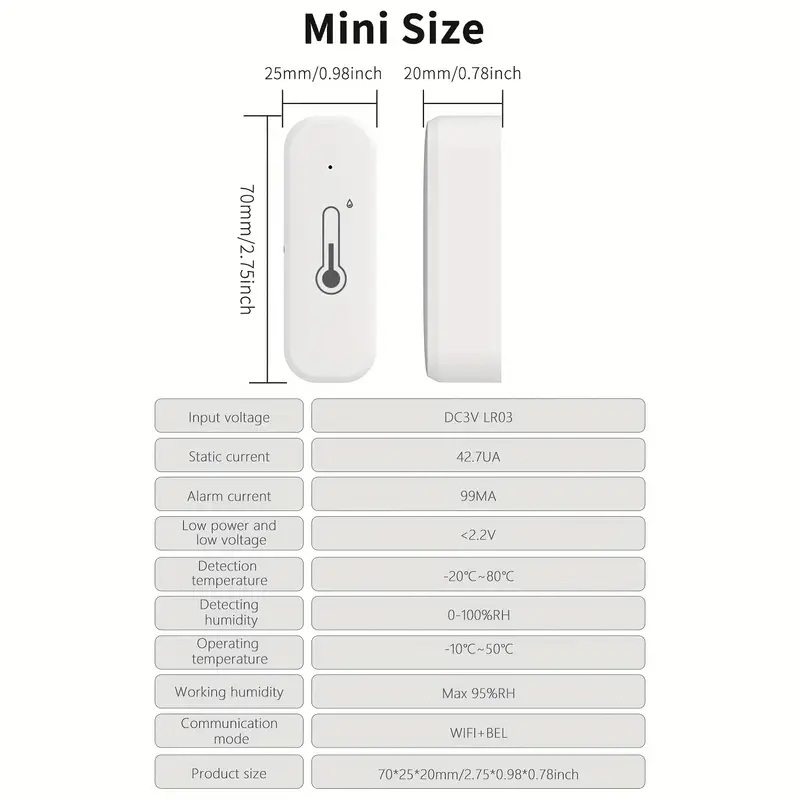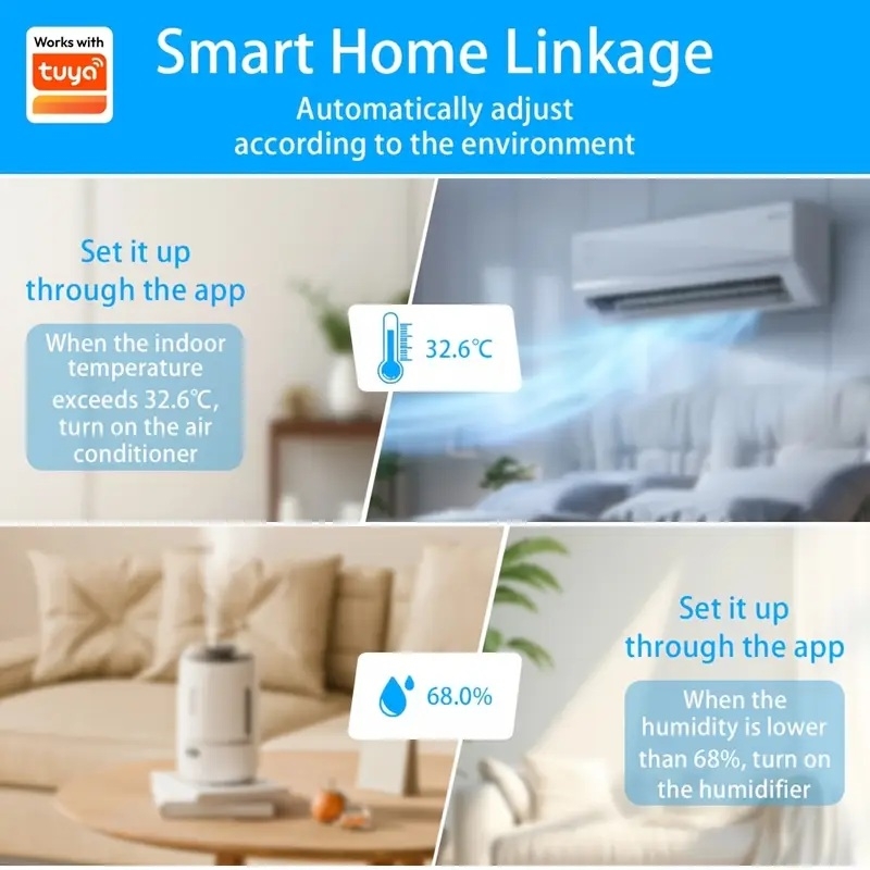 - WiFi-anslutning och appstyrning – övervaka och analysera klimatdata i realtid via Tuya Smart eller Smart Life.