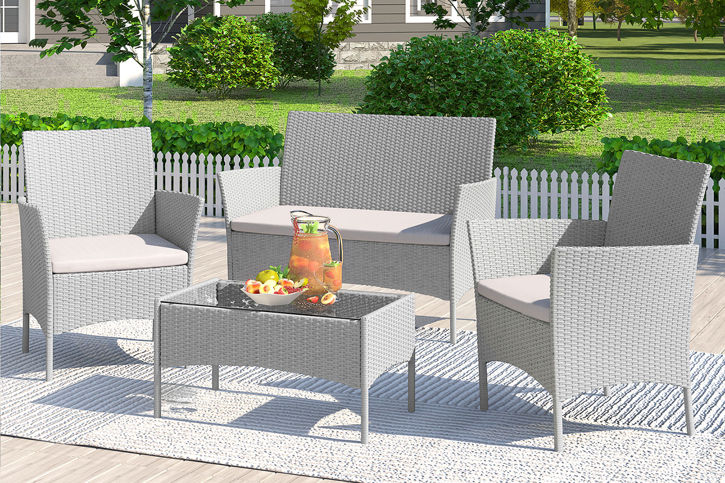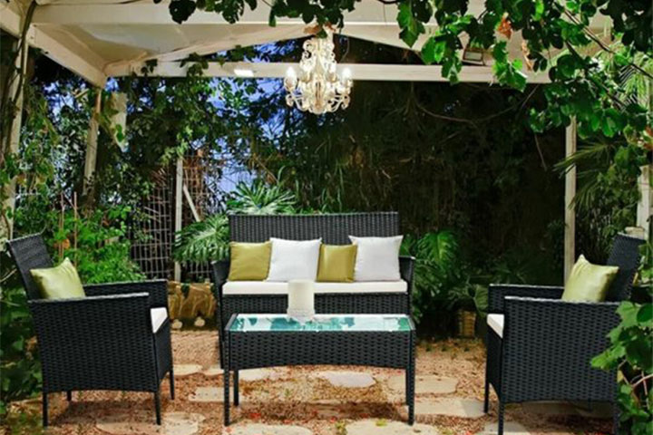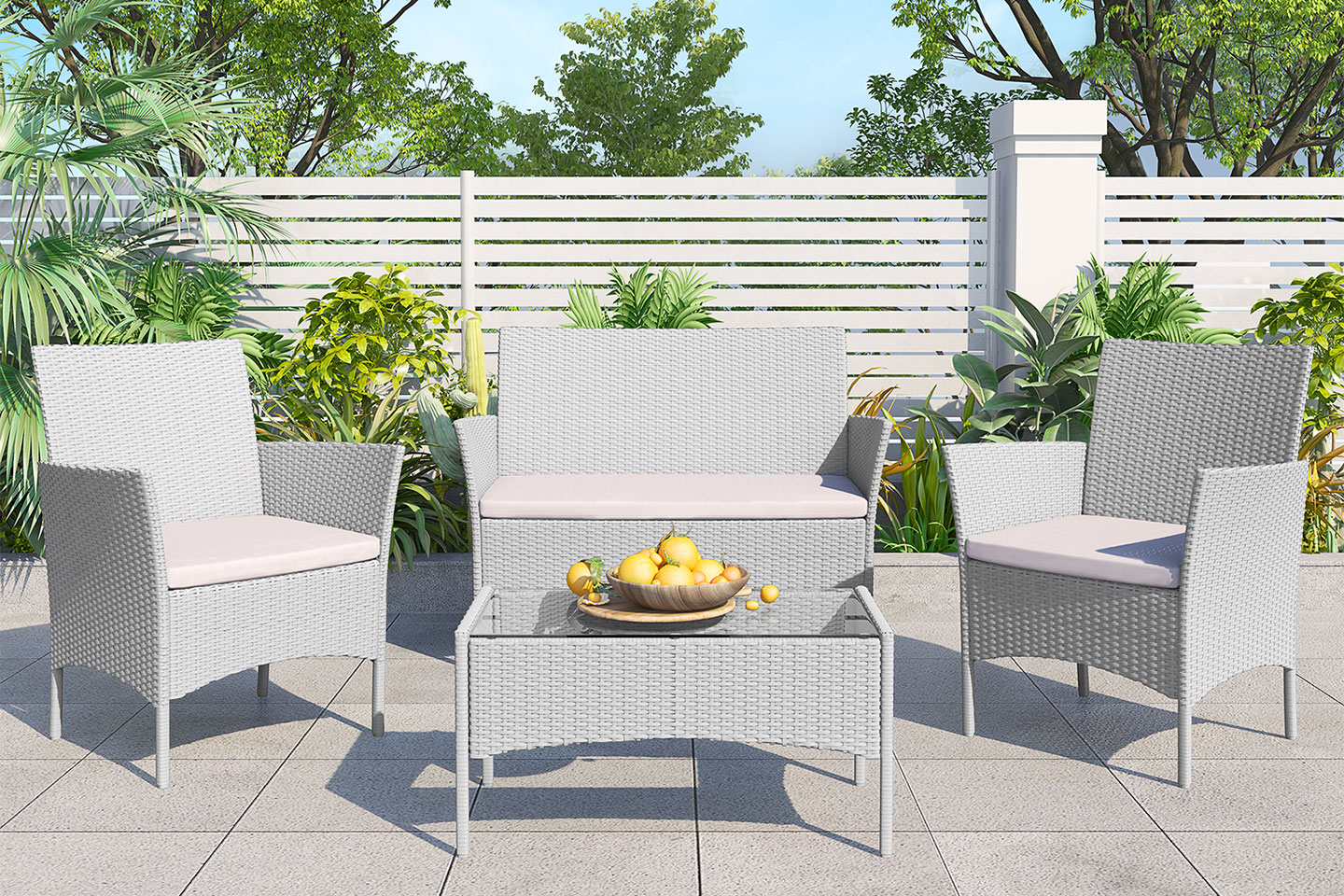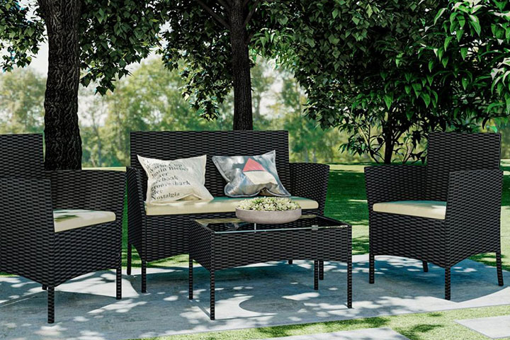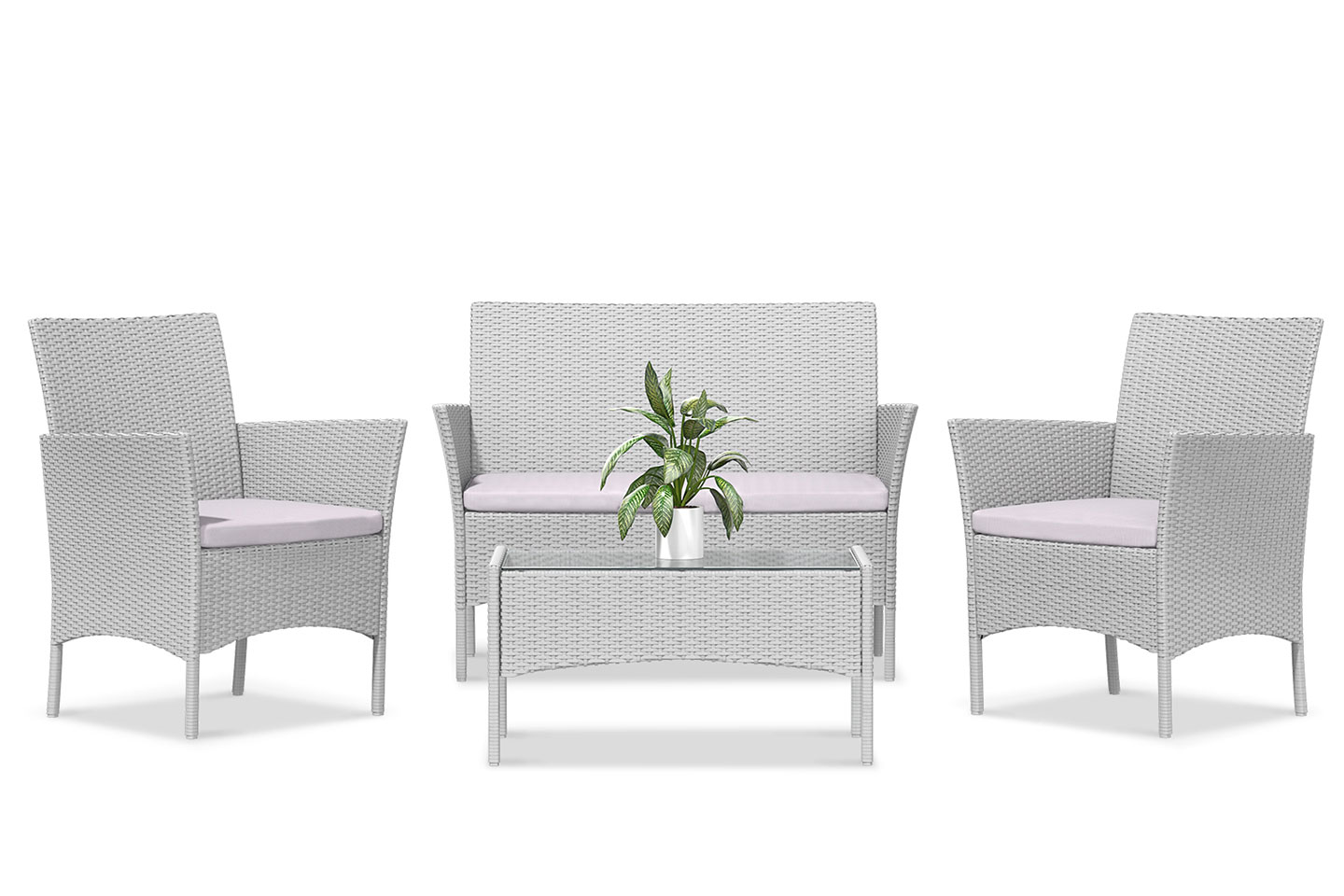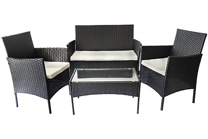 Detta set innehåller utemöbler med två fåtöljer, en 2-sits soffa och ett bord. Kan stå ute hela året.