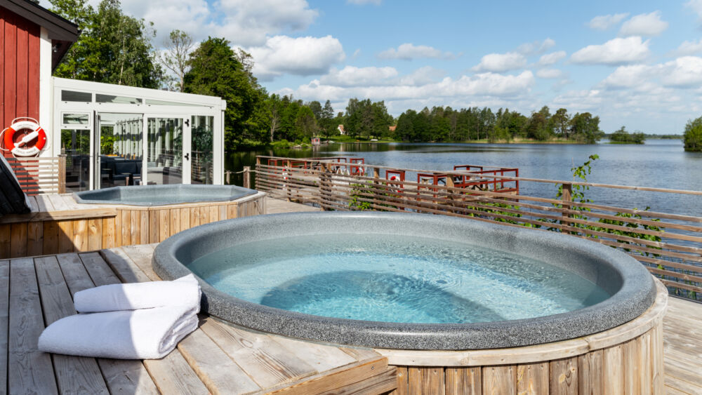 Sjöstugan SPA Lounge vid Gimo Herrgård är en stillsam oas där nordisk natur möter modern harmoni. Omgiven av ek, björk och glittrande vatten väntar bastu, varma bad och en badbrygga för dopp året runt. Koppla av i loungen med något gott i glaset och njut av panoramautsikten över sjön.