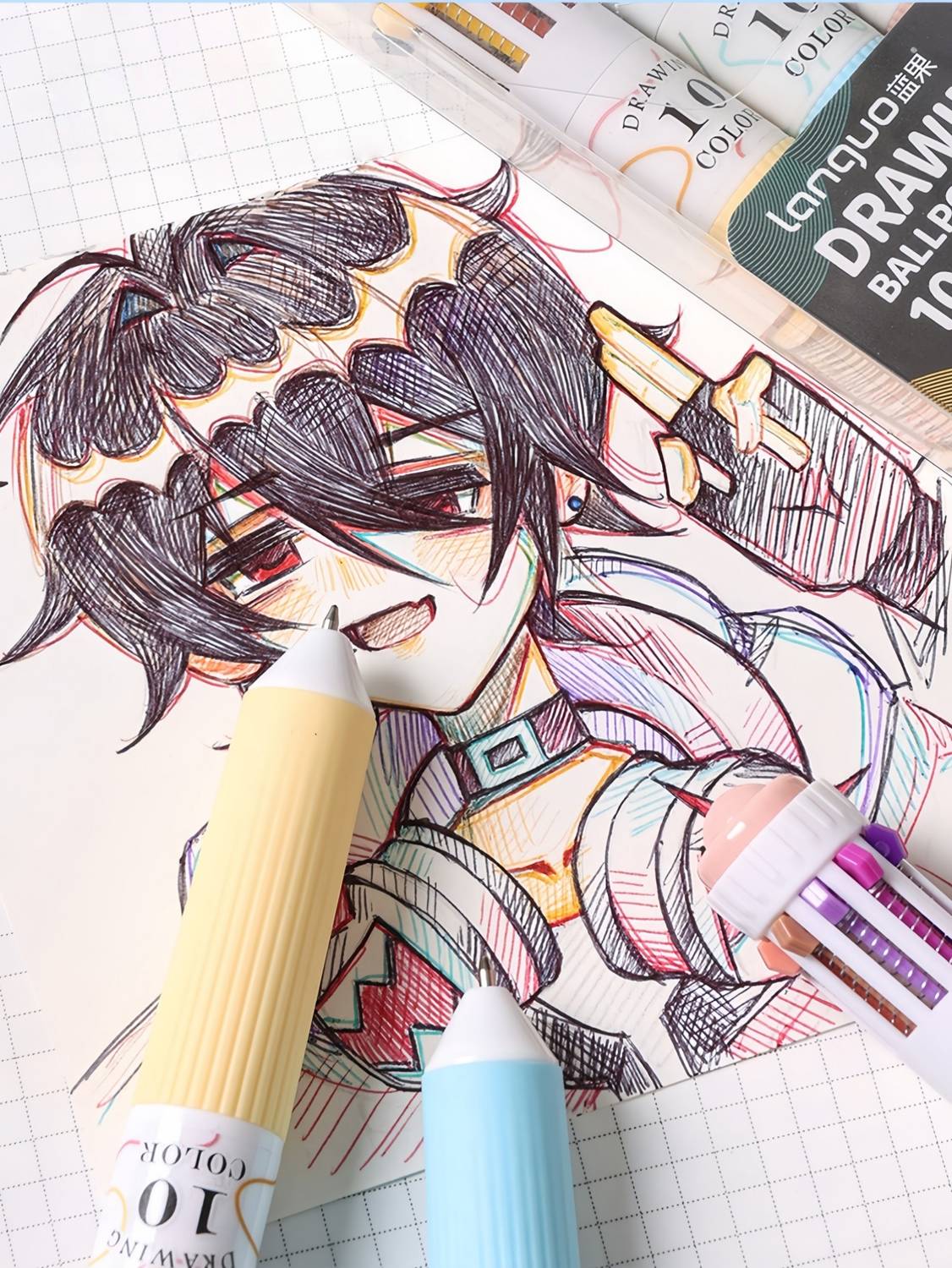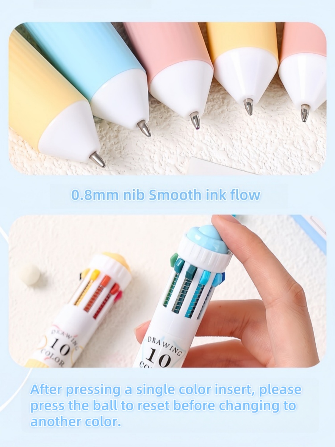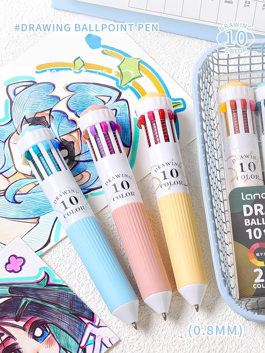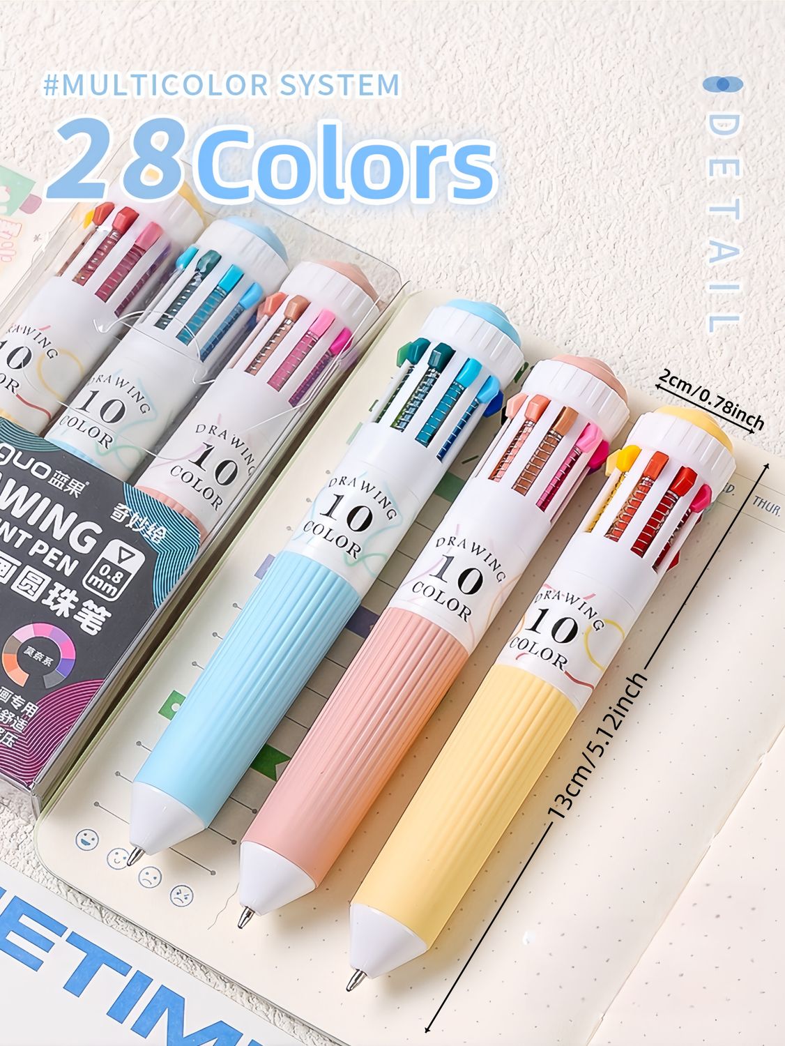 28 färger flerfärgad kulspetspenna set 0,8 mm, 10-i-1 färgade pennor Fine Point indragbara kulspetspennor för kontorsskola