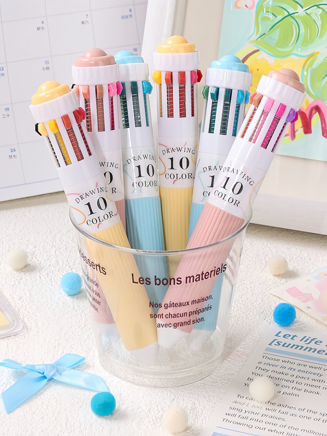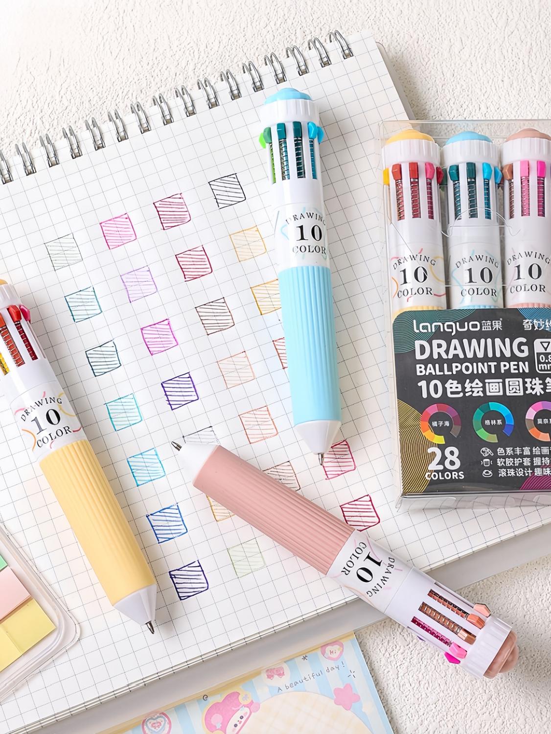 28 färger Flerfärgad kulspetspenna set 0,8 mm, 10-i-1 färgpennor Fine Point Indragbara kulspetspennor för kontorsmaterial för skolmaterial Studenter Barnpresenter, 3-pack