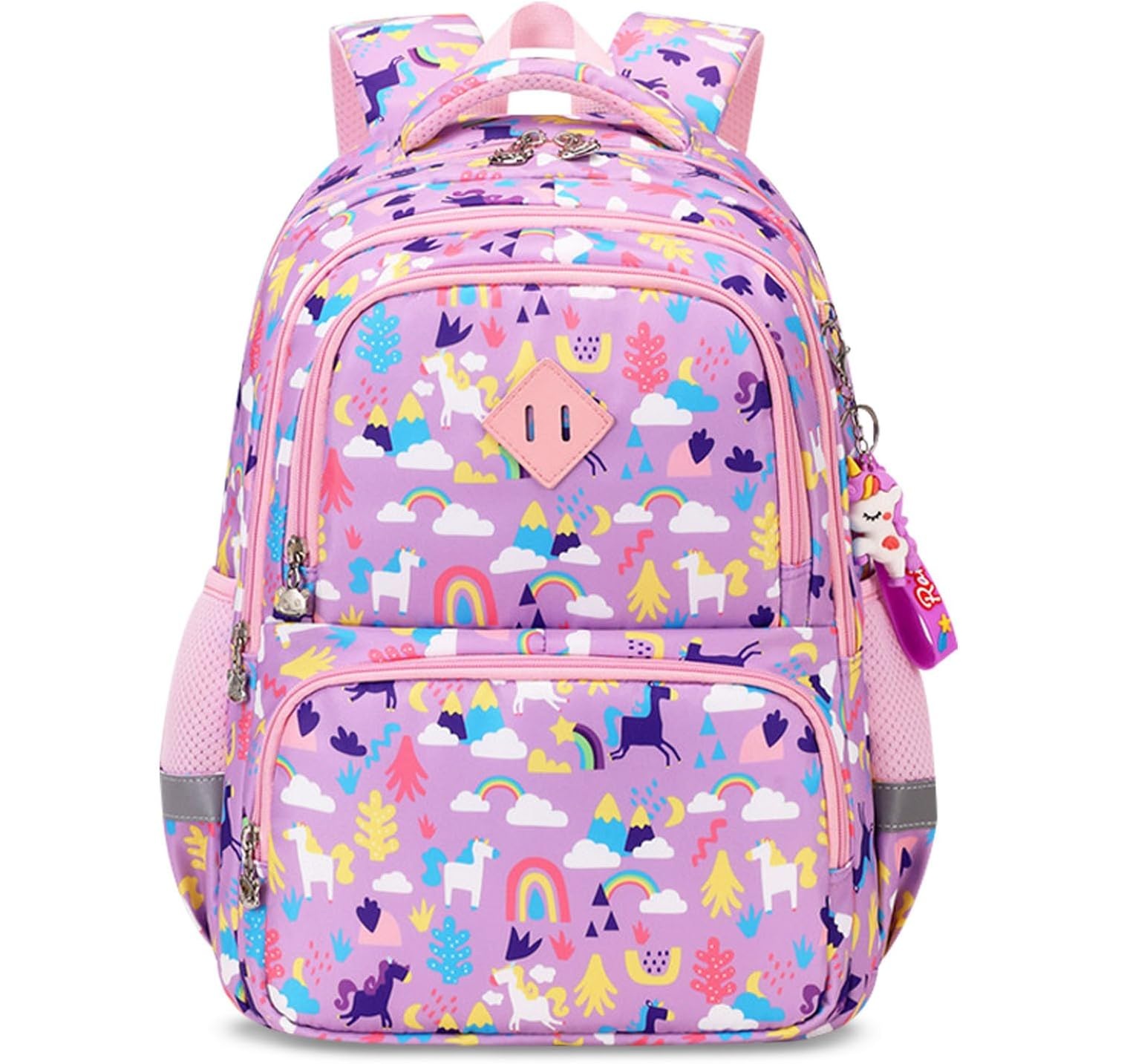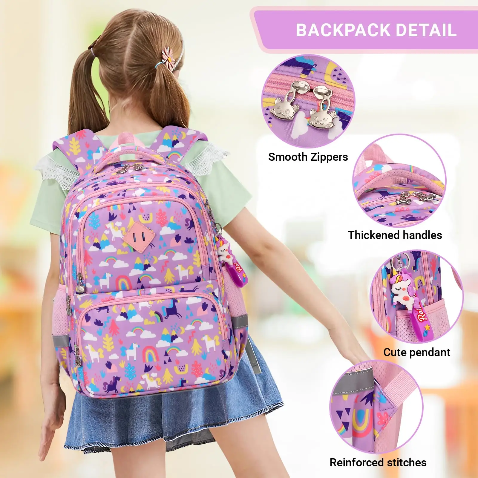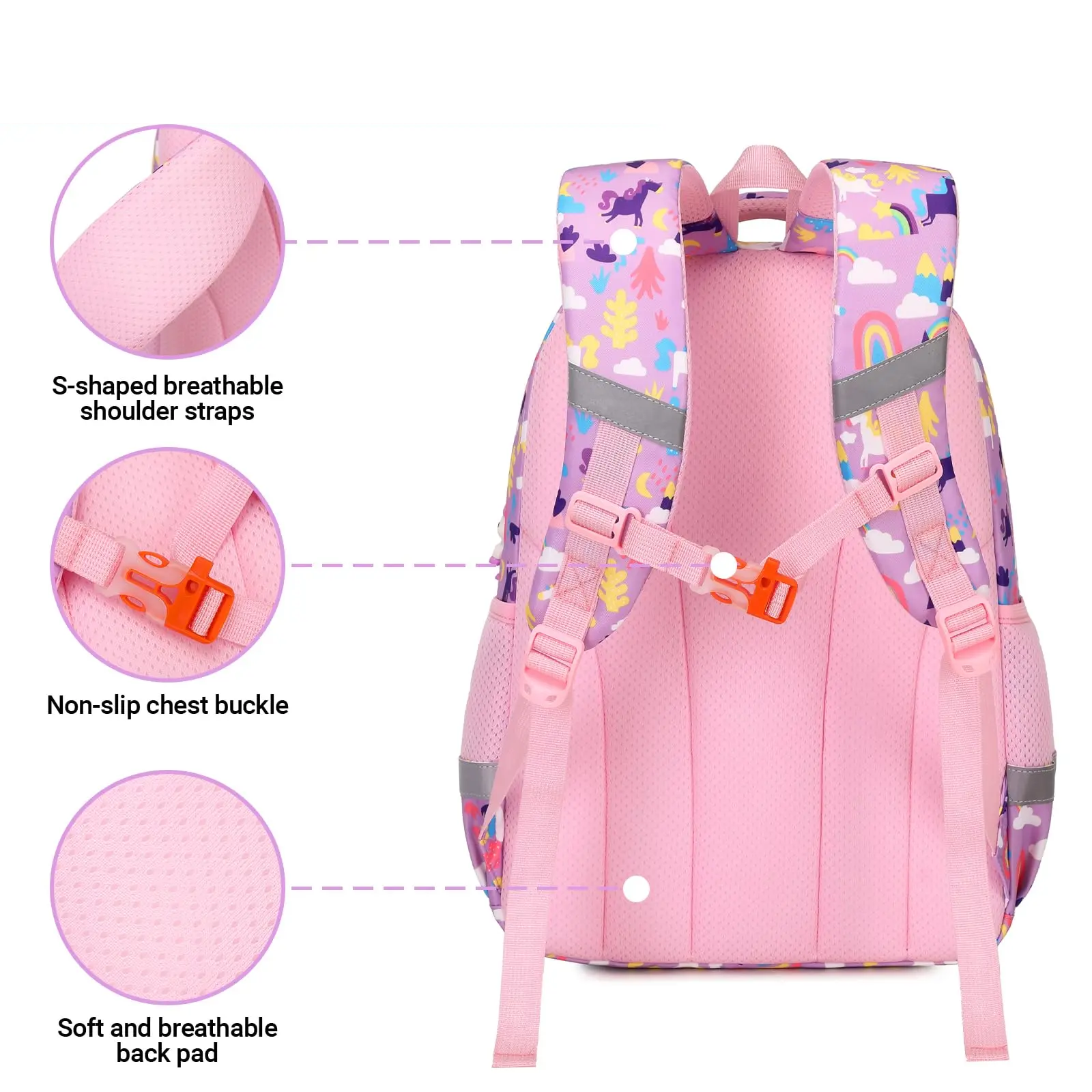 Praktisk och bekväm barnryggsäck med färgglatt tryck. Ryggsäcken är slitstark och passar perfekt för både skoldagar och utflykter. Tillverkad i vattenavvisande material med ergonomiskt utformad ryggpanel och vadderade axelremmar för hög komfort. Reflekterande detaljer på sidorna ökar synligheten i mörker, och de många facken gör det enkelt att hålla ordning på skolgrejer, matlåda och småsaker.
