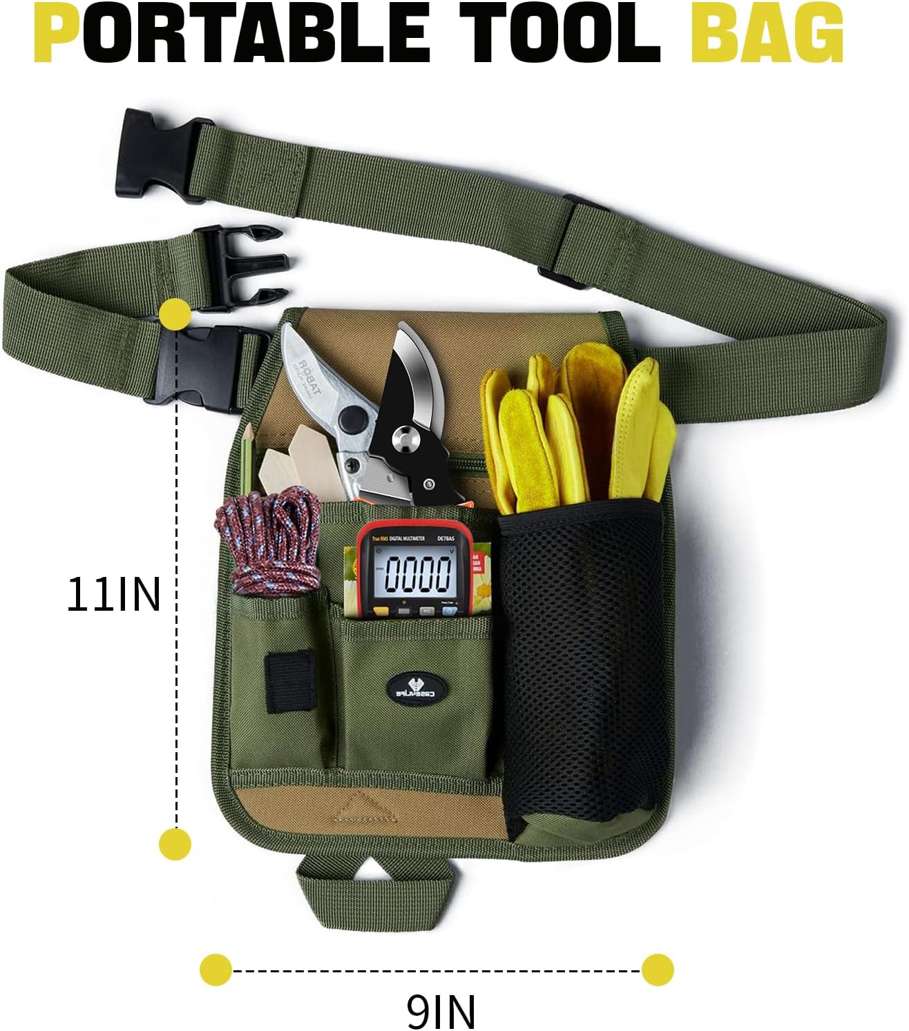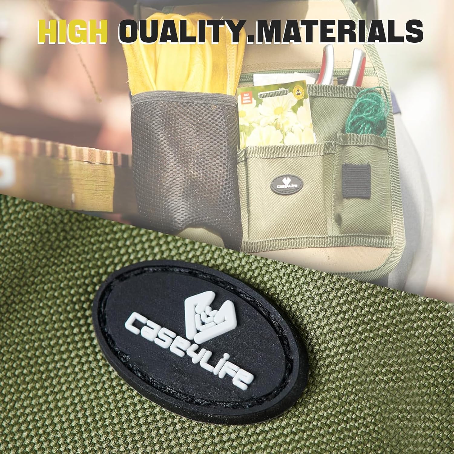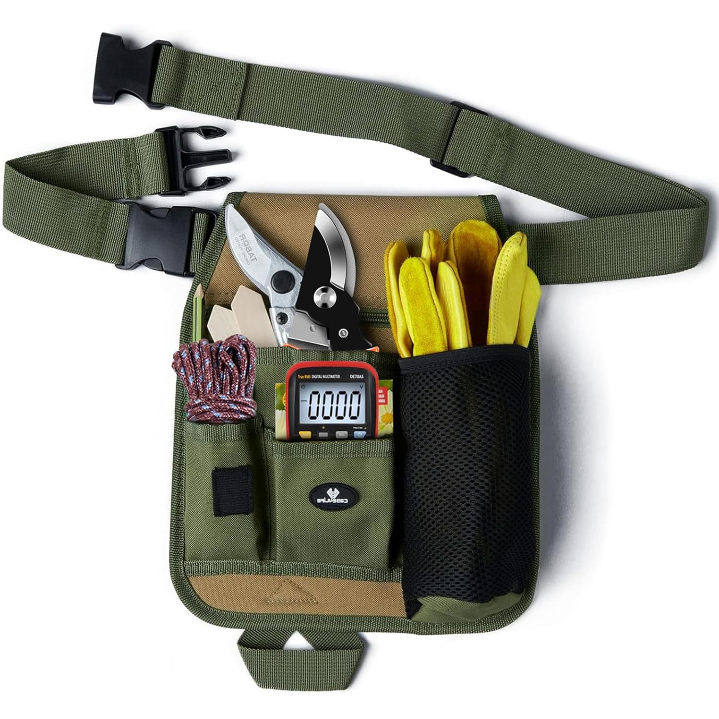 Gör trädgårdsjobbet enklare med ett smidigt trädgårdsbälte! Bältet har flera fickor där du kan lägga dina verktyg, så att du alltid har dem nära till hands. Det klarar att bära upp till 5 kg, vilket passar perfekt oavsett om du pysslar i rabatterna, snickrar eller arbetar utomhus.
