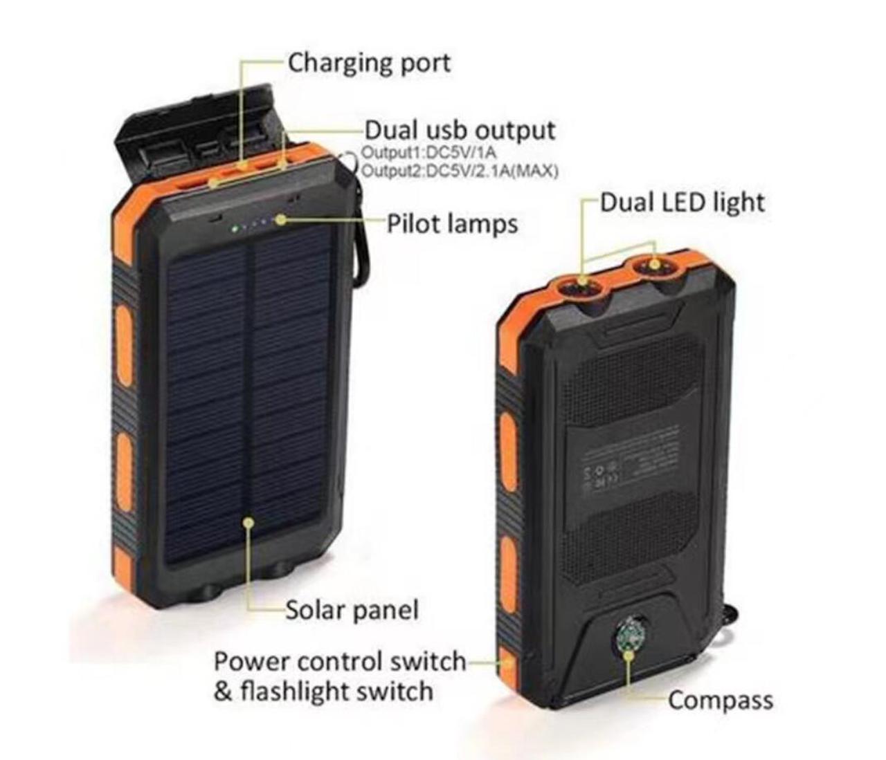 Att våga sig ut på äventyr utan en av dessa powerbanks är otänkbart! Denna robusta enhet, som kan fästas på din ryggsäck med den medföljande karbinhaken, är din ideala följeslagare på campingresan. Denna vattentäta powerbank låter dig ladda två enheter samtidigt, och dess solceller genererar ytterligare laddning – men observera att solcellsladdningsfunktionen ger en låg laddningsnivå och är mer av en nödlösning. Dessutom fungerar den även som en kraftfull ficklampa och har en inbyggd kompass, vilket gör den till ett praktiskt överlevnadsverktyg.